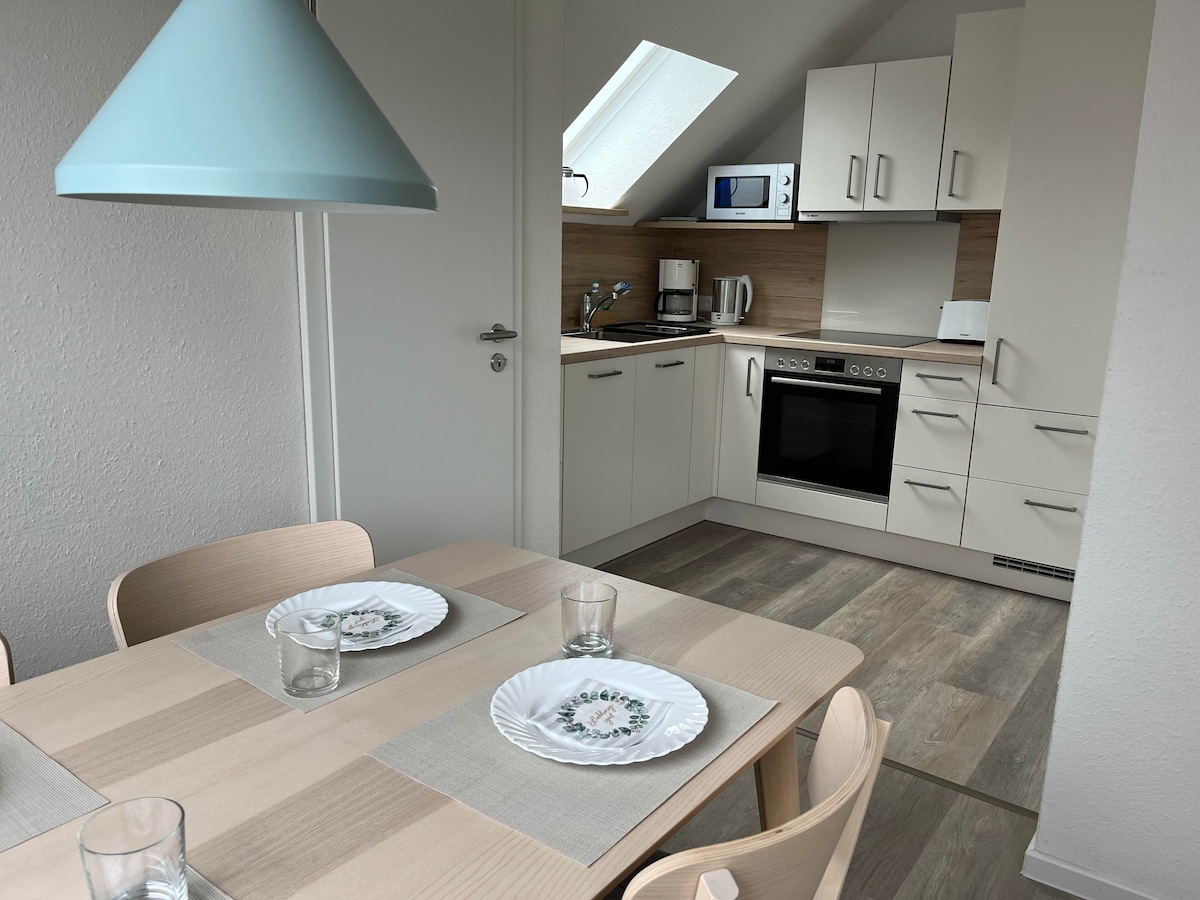 Penthouse, nur ca. 200 Meter vom Strand, mit 2 großen Dachterrassen (etwa 40 qm Fläche) inkl. XXL-Strandkorb. Möglichkeiten zum Entspannen in jede Himmelsrichtung.vom Sonnenaufgang bis zum Sonnenuntergang. Die Wohnung mit 2 Doppel-Schlafzimmern verfügt über einen großzügigen Wohnbereich mit Essecke, kompletter Einbauküche und Büroecke. Das Bad im Hamptons-Stil verfügt über eine ebenerdige Dusche und eine Waschmaschine.