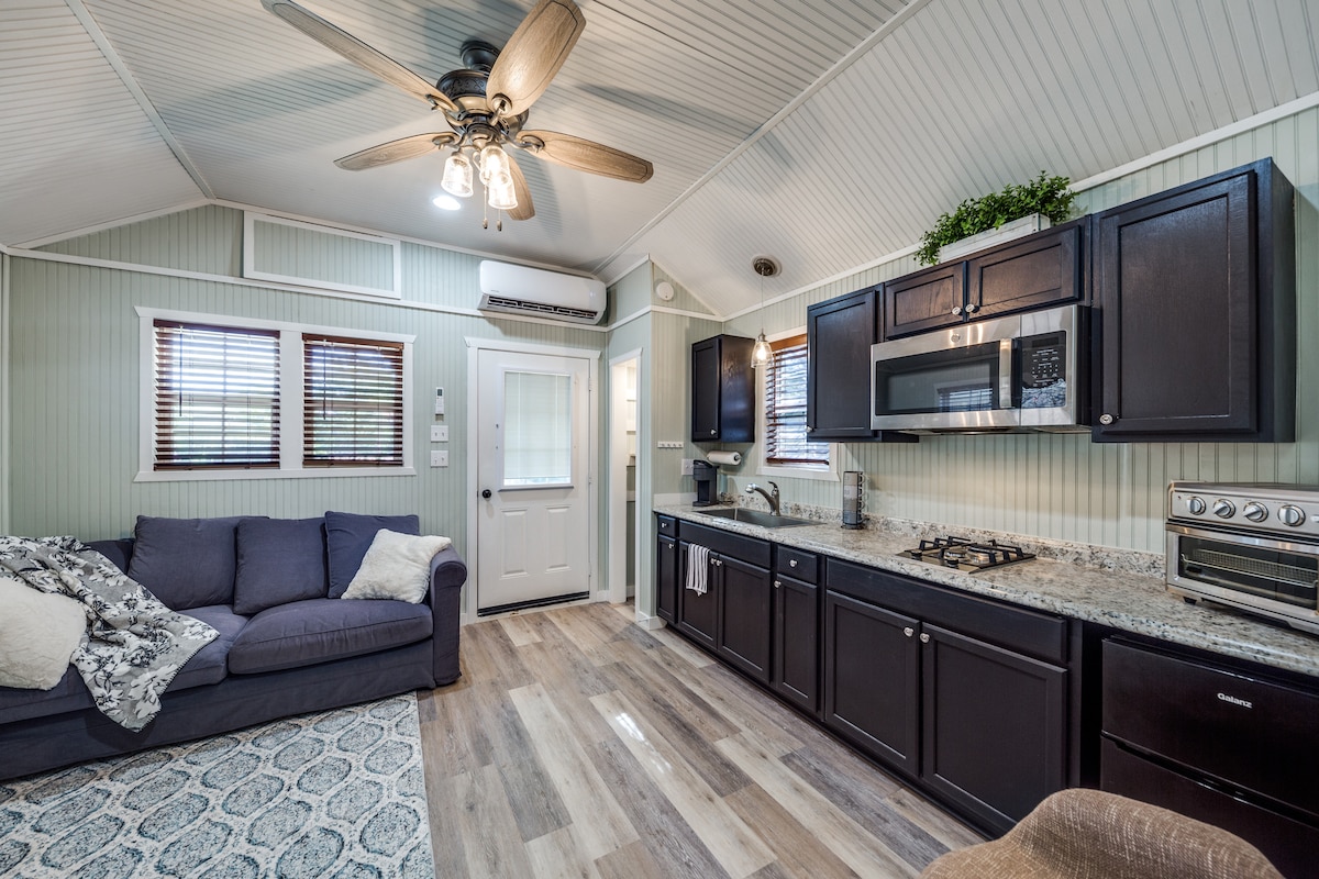 Esta acogedora casita inspirada en Texas es la ubicación perfecta para todas tus aventuras en Hill Country. Estarás a pocos pasos de las tiendas únicas de Comfort, restaurantes locales y vinotecas. La cocina está totalmente equipada con todas las necesidades para crear una comida maravillosa junto con una estufa de gas con horno eléctrico. La cama tamaño king del dormitorio y el televisor de 55pulgadas son perfectos para relajarse después de tu día explorando el área. El baño tiene tocadores dobles, ducha a ras de suelo y inodoro separado para mayor privacidad.