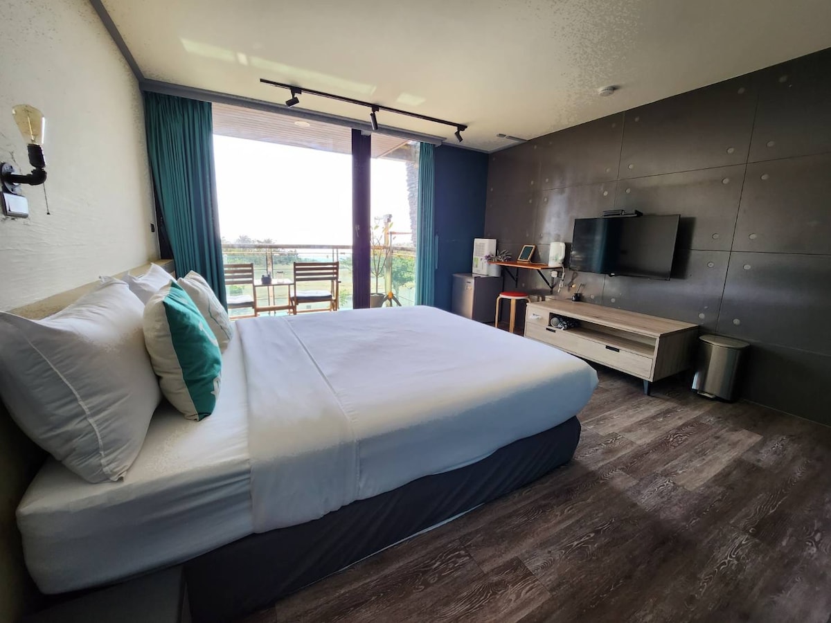 Hermosas vistas al mar, terraza en la azotea, a 3 minutos a pie de la playa, a 15 segundos a pie de la calle principal de Kenting, baño separado, habitación doble para 2 personas