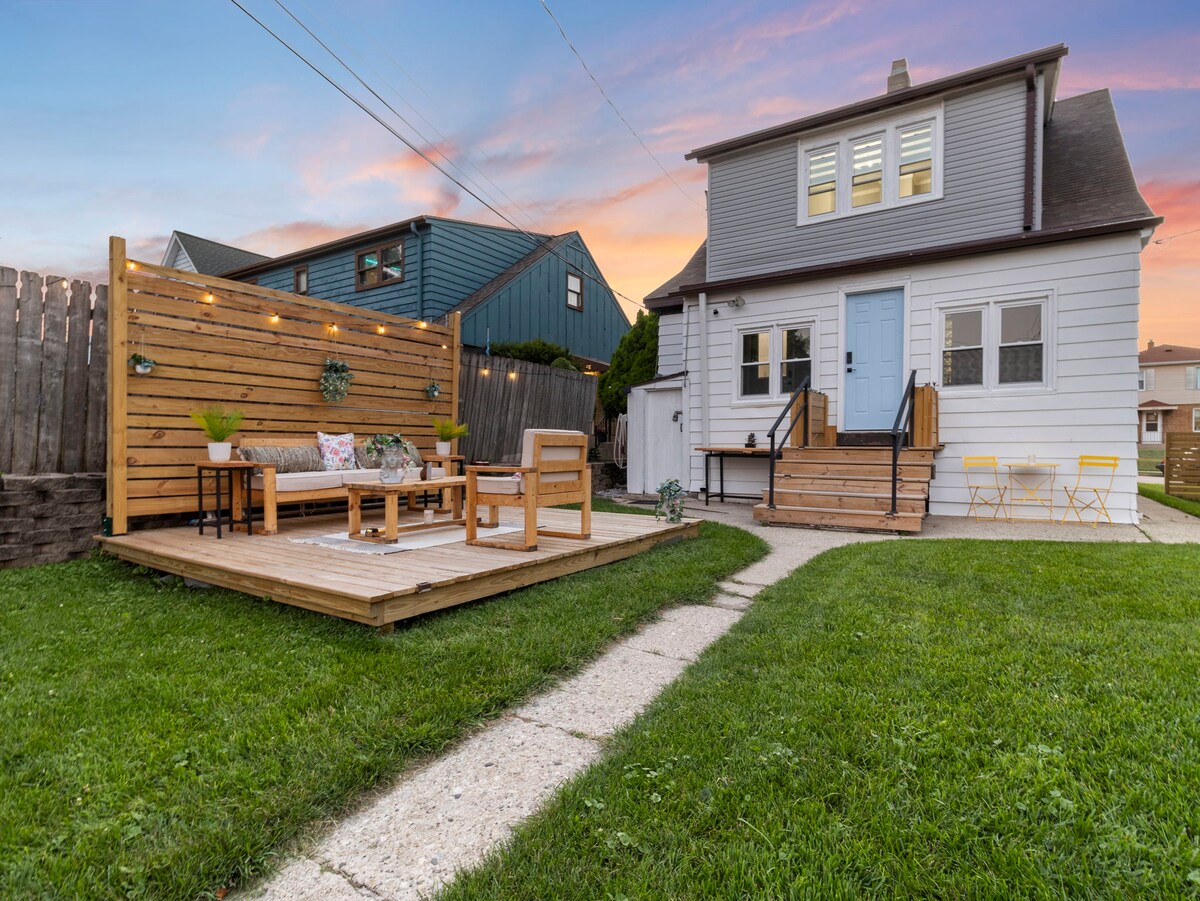 Discover this one-of-a-kind, shabby-chic second-floor apartment in the heart of Downtown Kenosha — just steps from coffee shops, restaurants, museums, and the shores of Lake Michigan. Ideal for travelers who want everything within walking distance. Relax and unwind on the spacious, completely private back deck — your own hidden oasis tucked among treetops and historic neighborhood buildings. Perfect for stays up to four guests. Please note: This property is not suitable for young children.