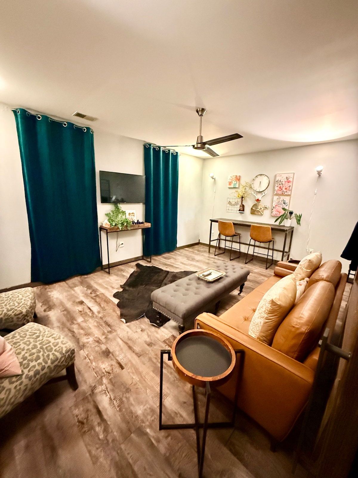 Apartment 2 is the upper unit of a two-unit home, offering a cozy stay full of historic character. Accessible by a flight of stairs, it has it’s own private entrance & a bright sunroom with original windows. The full kitchen features an original built-in. Enjoy original hardwood floors, beautiful woodwork & a clawfoot tub perfect for relaxing soaks. Ample closet space, 680 thread-count sheets & blackout blinds. Ideal for guests who appreciate historic charm & a welcoming home away from home.