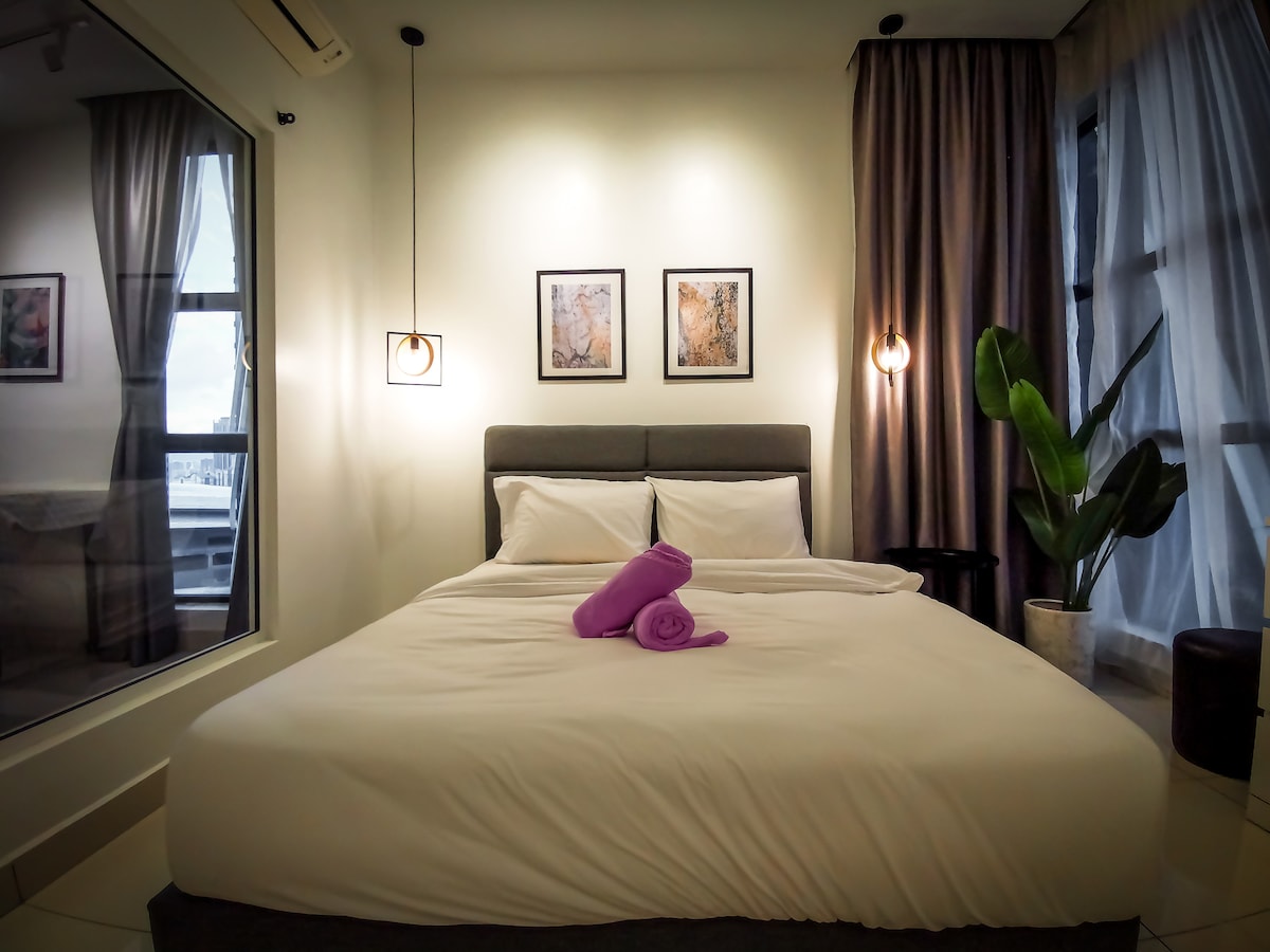 Why stay at The Palm's Junior Suite at Lucentia Residence - the views of KL - beautifully decorated with a fun spirit - centrally located - near public transportation - fast wifi - TV with Netflix, Apple TV, Prime Video - 2 gorgeous pools - gym, pool table, BBQ pits, paino - super host manager - garage parking - recommended for 2, max can sleeps 3 - LaLa Port Shopping Mall & entertainment street are attached - grocery, drug store, and many restaurants are attached - movie theater Gsc beside