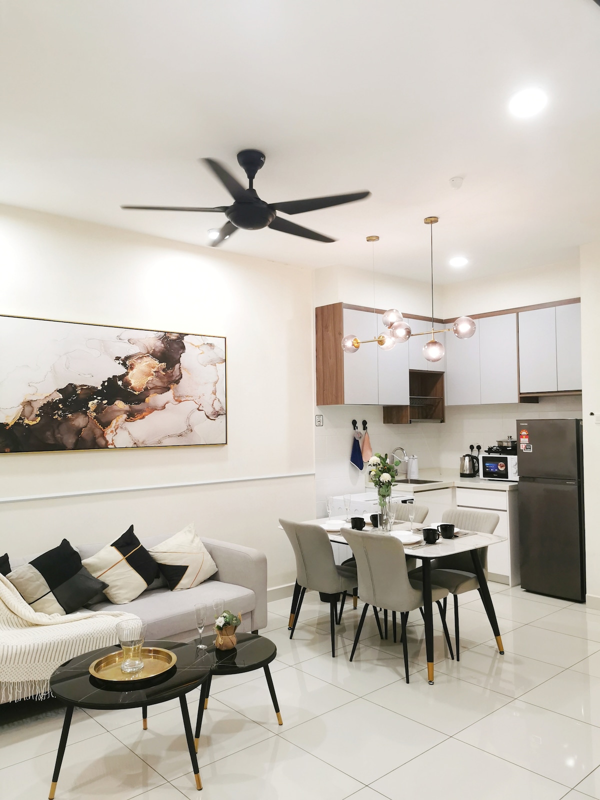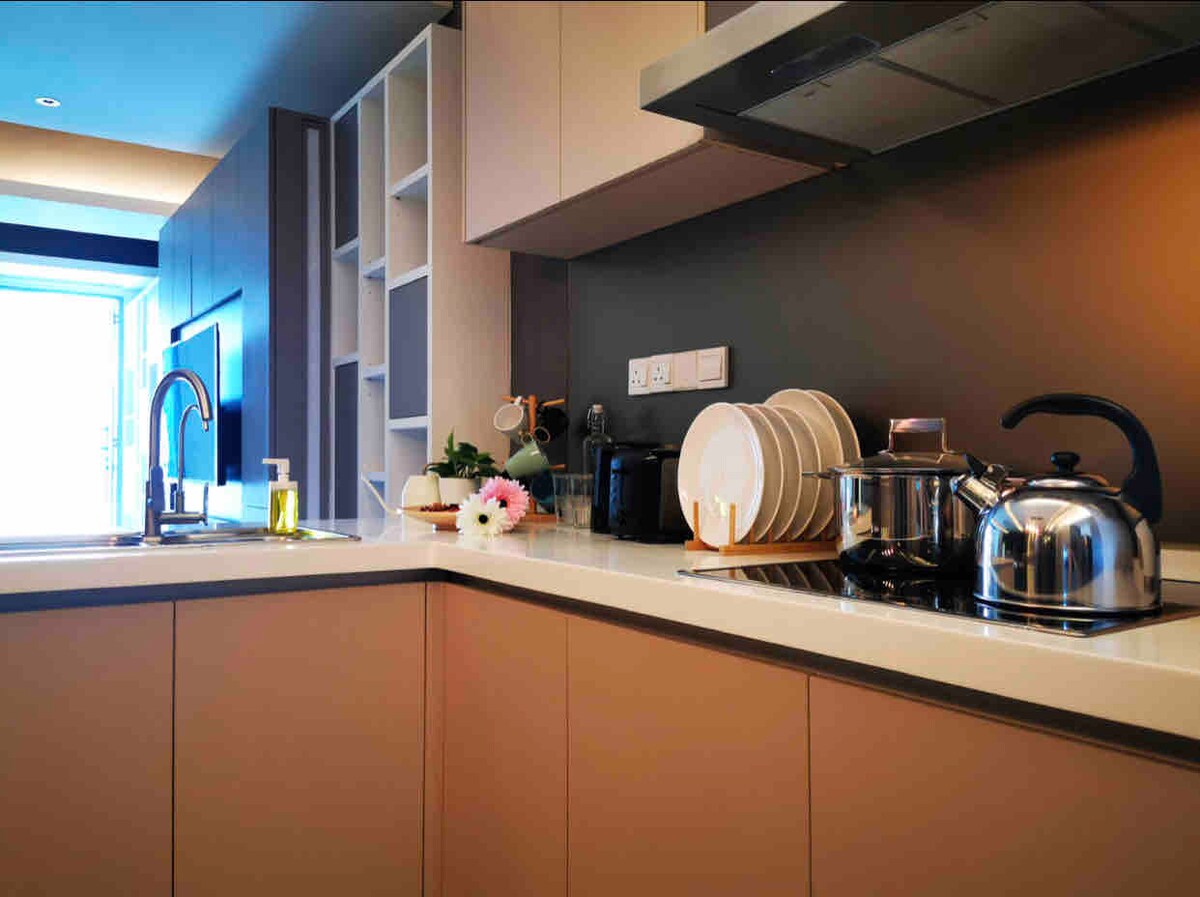 ¿Por qué alojarse en The Elegance Suite en Lucentia Residence? - las mejores vistas de KL - Hermosamente decorado con un espíritu divertido - Ubicación céntrica - cerca del transporte público. - Wifi rápido - 2 televisores con Netflix, Apple TV, Prime Video. - 2 piscinas hermosas. - Apto para familias con cuna y silla alta. - Gimnasio, mesa de billar, barbacoa, piano. - 1 estacionamiento. - capacidad para 4 personas, máximo 5 - LalaPort Shopping Mall y la calle de entretenimiento WOW están adjuntos. - Tienda de comestibles, farmacia y muchos restaurantes están conectados - cine GSC