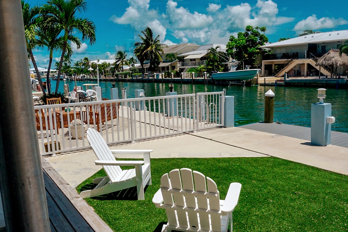 Apartamento actualizado frente al mar de 2 dormitorios/2 baños con cama tamaño king, cama tamaño queen y sofá cama. 35' de rompeolas, ¡trae tu barco! Disfrute de una cocina de cuarzo completamente surtida con electrodomésticos de acero inoxidable. Ubicado en Venture Out, un complejo cerrado tranquilo y familiar con pesca, langosta, piscinas, jacuzzi, pickleball, tenis, baloncesto, centro recreativo, bicicletas, kayaks y SUPs. Entre Key West (20 millas) y Marathon. WiFi gratuito; televisores Roku en ambos dormitorios y sala de estar. Kayaks, SUP y área de almacenamiento con refrigerador adicional y congelador de cebo.