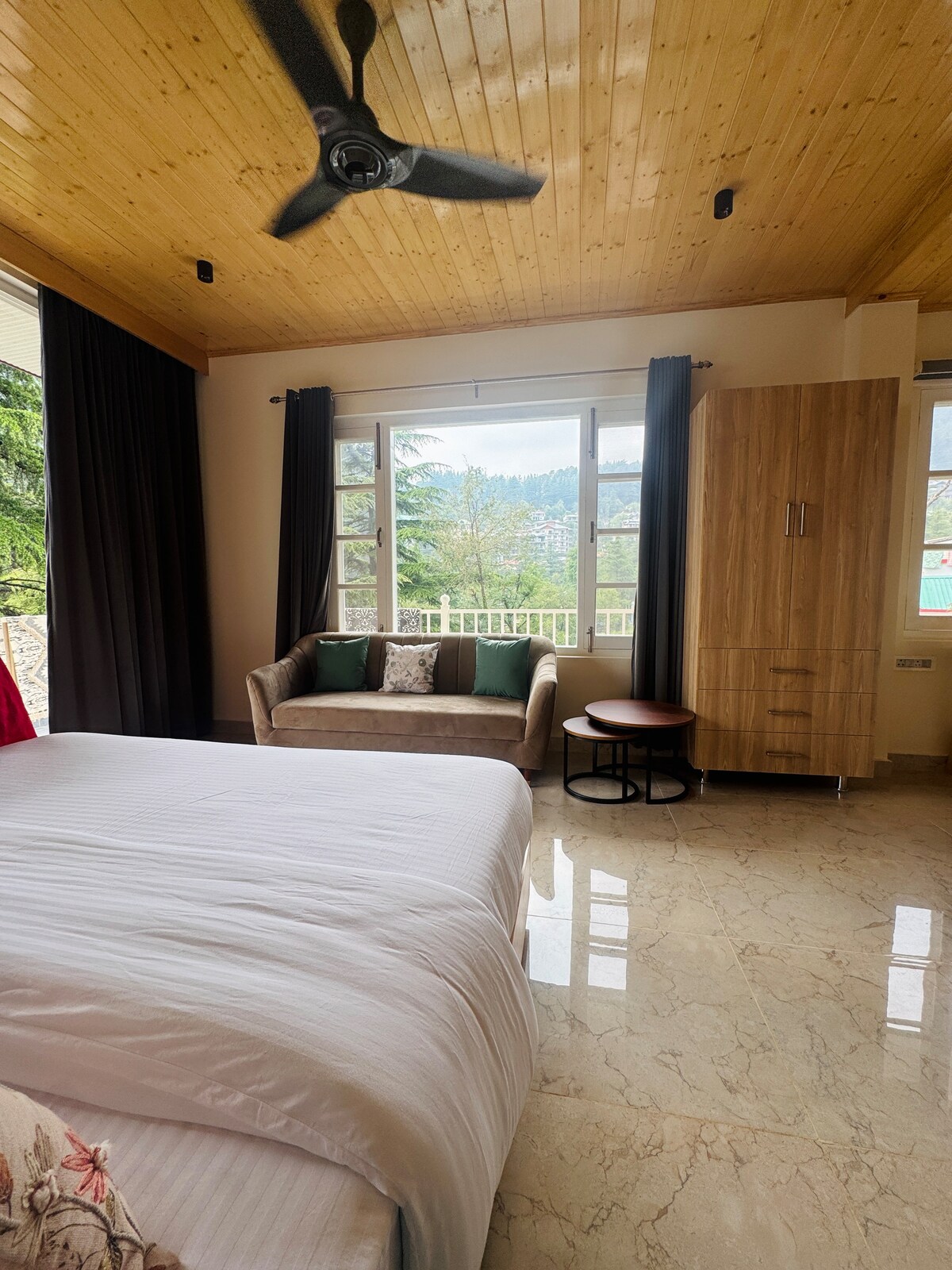 Bienvenido a tu santuario privado en el sereno pueblo de Dharamkot, ubicado sobre McLeod Ganj. Nuestro apartamento de lujo en el Himalaya ofrece la mezcla perfecta de comodidad, elegancia moderna e impresionantes vistas a la montaña, diseñado para viajeros exigentes que buscan tranquilidad sin renunciar al estilo. Despiértate con vistas panorámicas de la majestuosa cordillera de Dhauladhar desde tu lujosa cama tamaño king o balcón privado.