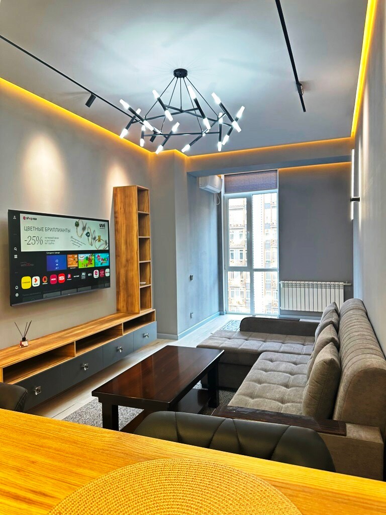 Un apartamento totalmente nuevo en el centro de la ciudad de Dushanbe. Acogedor y elegante dormitorio y sala de estar con colores neutros que harán que tu estancia sea cómoda. Impresionantes vistas a la ciudad. Cocina nueva totalmente funcional. Hay muchas tiendas y restaurantes en las inmediaciones. A 5 minutos a pie de la avenida Rudaky.