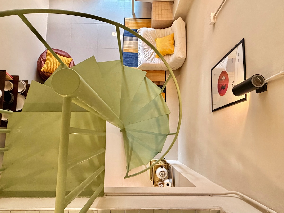 Sencillo en este lugar tranquilo y cultural a 5 minutos a pie de la ciudad de China, a 5 minutos en coche del centro de Bangkok, a 8 minutos a pie de la estación Wat Mangkon MRT (BL29). Un espacio curado donde se unen el arte, el encanto vintage y el alma de Bangkok. Ubicada en la planta superior de una histórica tienda, esta habitación brilla con un suelo de terrazo original, detalles en verde salvia y pinturas a mano de un artista tailandés que aportan textura en capas a cada rincón. Segundo piso (sin ascensor) **No aparcar o preguntar antes de reservar**