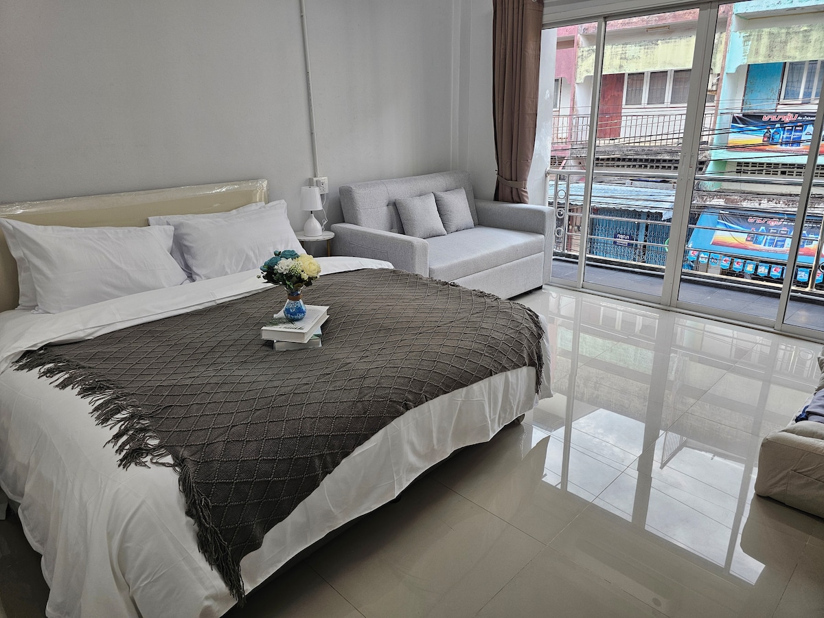 Relax in an elegant private suite at the heart of Hat Yai. This 1-bedroom, 1-bathroom unit features a separate living room, cozy bedroom with air conditioning, and a bathroom with bathtub. Enjoy the balcony view, fully equipped kitchen, and in-room washing machine for added convenience. Perfect for couples, solo travelers, or business stays, the suite offers both comfort and practicality — a stylish base for your Hat Yai journey.