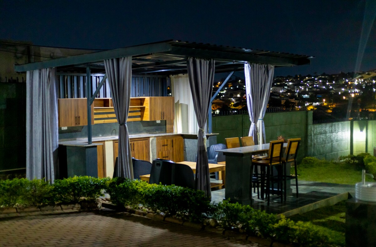 Apartamento familiar Ndare, un sereno refugio de 2 dormitorios con una oficina adicional, ubicado en una exuberante vegetación a solo 5 minutos del Aeropuerto Internacional de Kigali y del Parque Ecológico Nyandungu. Diseñado con un hermoso concepto minimalista, este elegante apartamento ofrece una escapada tranquila con todas las comodidades del hogar. Tanto si buscas privacidad, relajación o comodidad con estilo, te aseguramos un entorno tranquilo para los viajeros que desean disfrutar de Kigali.