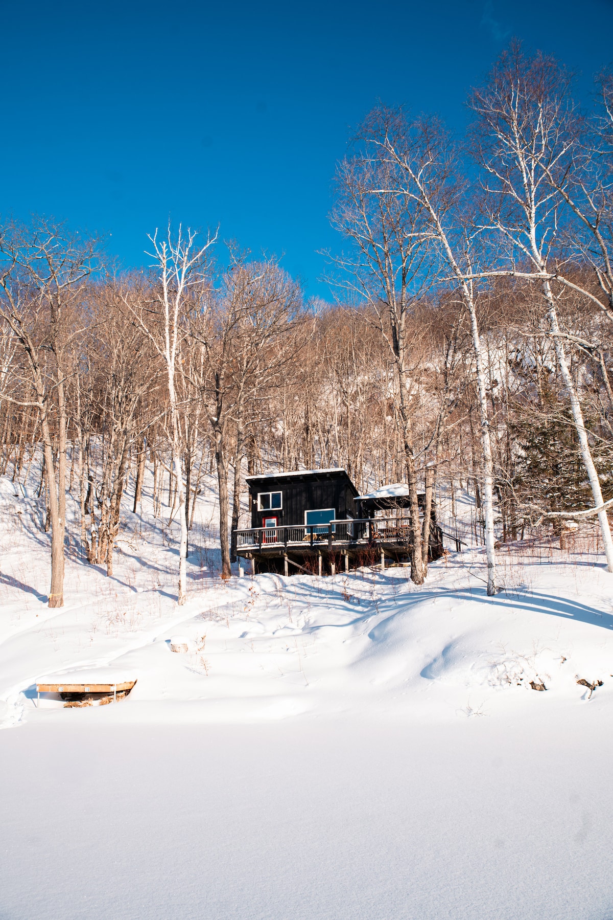 Casa de campo pintoresca y acogedora de 1 dormitorio escondida a lo largo de la costa sureste de un lago pequeño y tranquilo. Recientemente renovada, la cabaña es la escapada romántica perfecta. Se encuentra a 1 km de senderos para motos de nieve/quad, a 15 minutos de Bancroft y a 45 minutos del parque Algonquin. La cabaña incluye un muelle flotante con escalera de baño, barbacoa, chimenea de leña al aire libre, canoa, kayaks, chimenea de leña interior, televisión inteligente con satélite Starlink.
