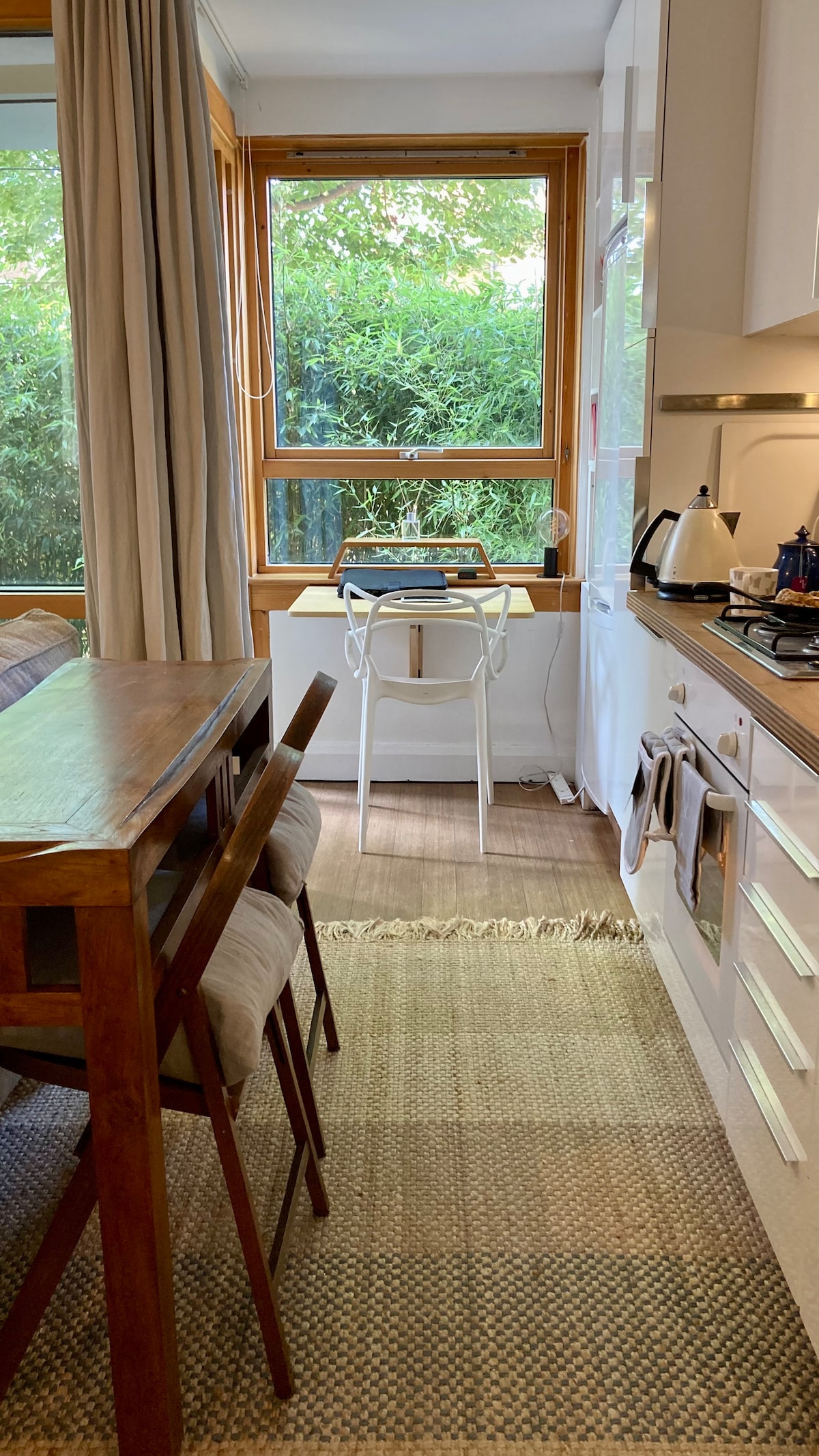 Ubicación NW1, cerca de las estaciones de Camden Town y Mornington Crescent, a poca distancia a pie de King's Cross y Euston: increíbles conexiones de transporte. A poca distancia en bicicleta de todos los lugares céntricos de Londres: alquiler de bicicletas/patinetes en la esquina (Santander, Lime). Cama doble. Un sofá grande (no sofá cama) para acomodar cómodamente a una tercera persona (el ancho entre los reposabrazos es de 178 cm/ 70 pulgadas). Ventanas del piso al techo y puerta de vidrio a un patio aislado por arbustos de bambú. Espacio muy cómodo y funcional