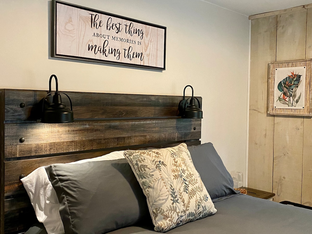 Si haces «glamping» cuando acampas, apreciarás los servicios más finos de esta casa de campo de estilo boutique en el lago Erie. Podría decirse que las mejores vistas de esta pequeña comunidad de casas de campo, The Kiss n Tell, adorna un acantilado con vistas al lago: impresionantes vistas desde todas las habitaciones. Despiértate con el sonido de las olas rompiendo en la orilla, toma el sol en las tumbonas, cena mientras el sol brilla en el agua, contempla las estrellas desde el jacuzzi o siéntate junto a una fogata junto al lago (se proporciona leña). Opciones infinitas sin salir de este hermoso espacio.