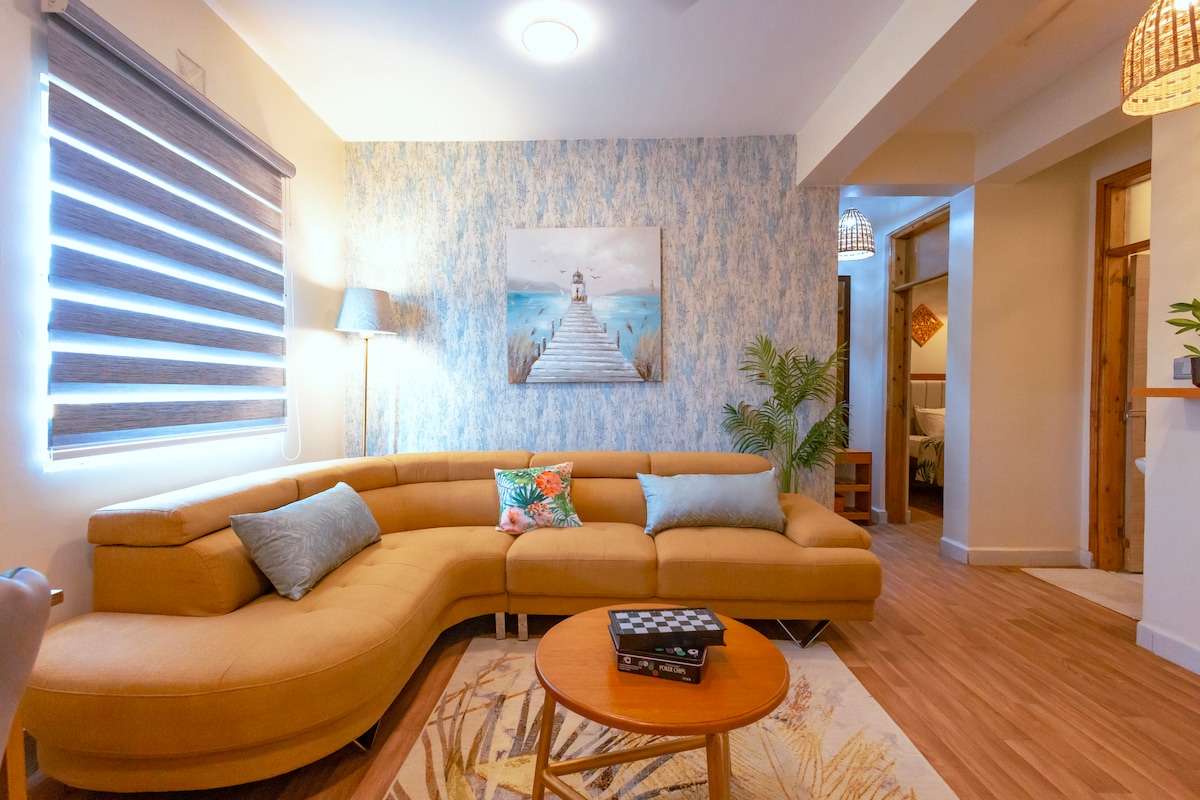 Jambo guest! Enjoy comfort and convenience in this Nyali coastal 1 bedroom apartment, just few minutes from beaches, shopping malls and top restaurants. Perfect for solo travelers, business guests' and couples. What you'll have: Spacious, air-conditioned bedroom with a comfy king-size bed and plenty of storage Bright living room area with a tasteful decor and an android TV Fully equipped kitchen with cooking essentials for home-style meals Stable WiFi for working 24/7 security and free parking
