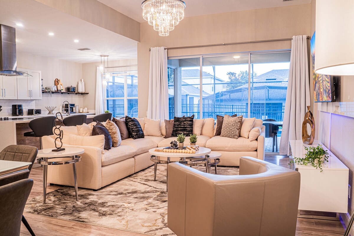 Situado a 15 minutos en coche de Disney, este lujoso diseño inspirado en 4 dormitorios, 3,5 baños es perfecto para una familia, multifamilia o fin de semana romántico con tu persona favorita.