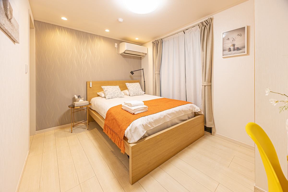 Esta luminosa propiedad se encuentra en el distrito norte de Tokio y es ideal para familias y grupos pequeños. Nuestra propiedad tiene dos dormitorios, uno con dos camas dobles y el otro con una cama doble, con capacidad para un total de 6 huéspedes. La sala de estar cuenta con un sofá y una mesa de comedor, lo que la convierte en un espacio ideal para disfrutar de las vistas, relajarse y cenar. La cocina está totalmente equipada para cocinar deliciosas comidas La propiedad incluye un inodoro y un baño separados para tu comodidad.