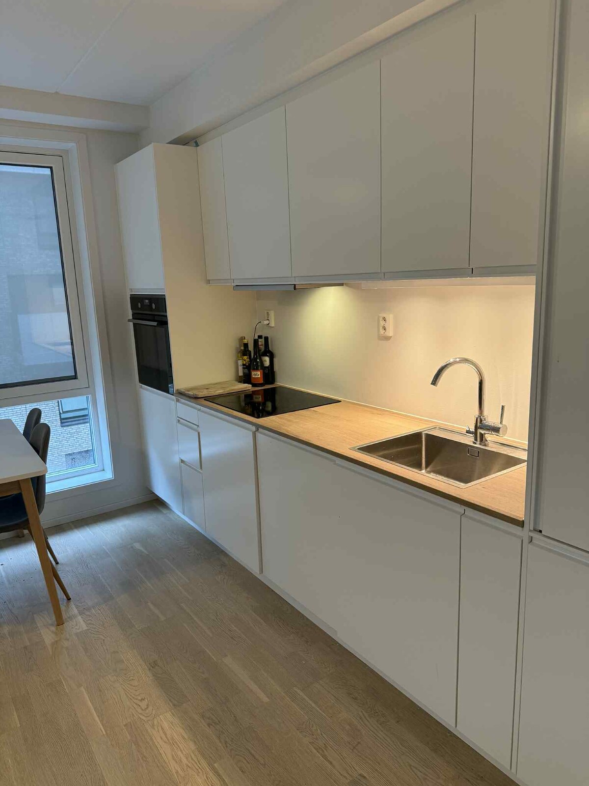 Departamento moderno y acogedor en Fagerborg Kvartalet (2023), con una ubicación perfecta en Lillestrøm y con todo lo que necesita a la vuelta de la esquina. Aquí podrá vivir con tranquilidad en el quinto piso, con ascensor, terraza privada y acceso a una amplia terraza común en la azotea con excelentes vistas. El departamento tiene dos habitaciones: una con una cama ajustable y buen espacio de almacenamiento, y otra con un sofá cama y un espacio de oficina. El espacioso baño cuenta con lavadora, y la cocina abierta dispone de su propio comedor. Se puede alquilar estacionamiento en el sótano.