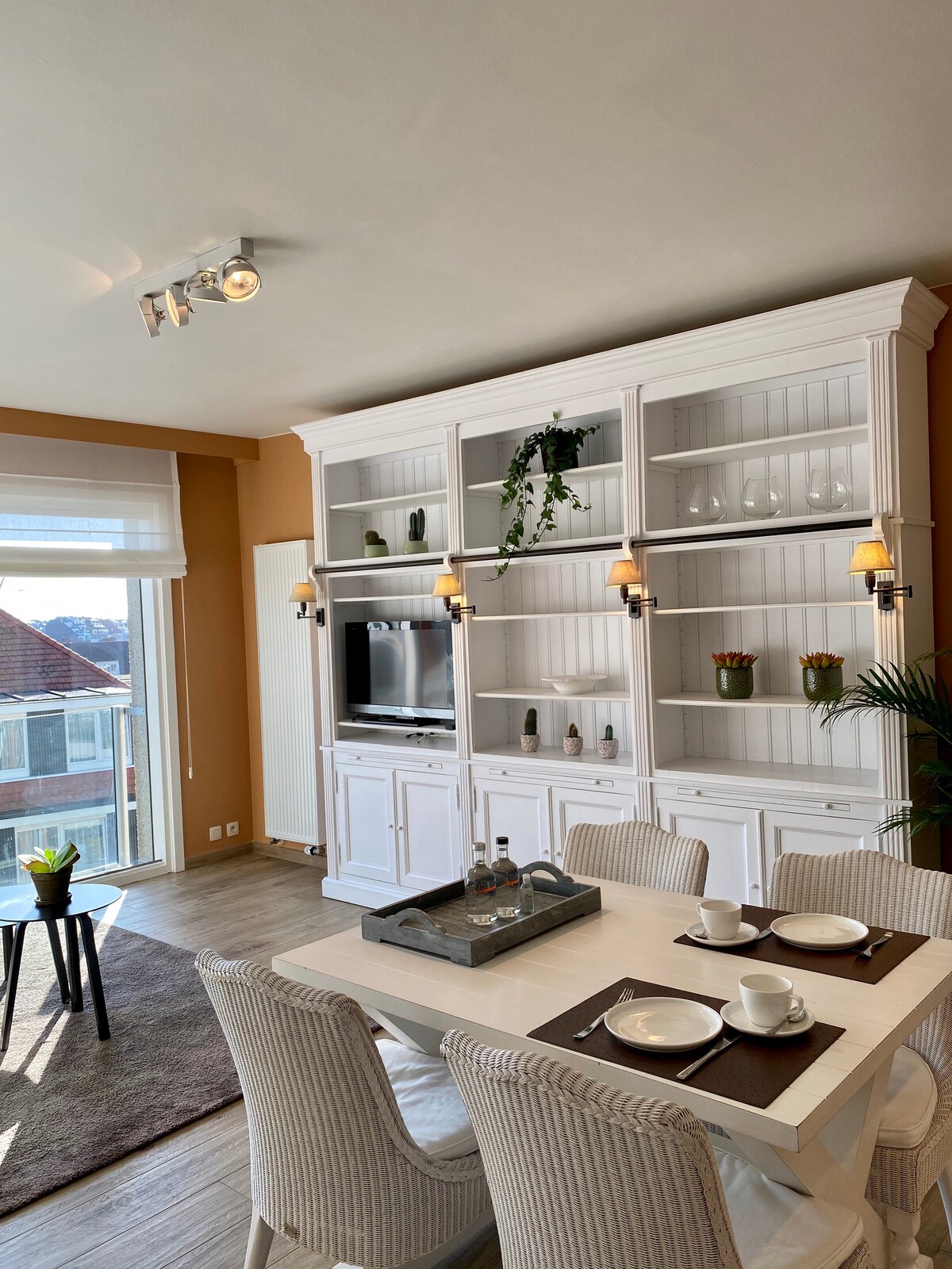 Departamento luminoso con vistas panorámicas al mar y a las dunas. El comedor se puede transformar en una terraza cubierta donde puedes disfrutar de la puesta de sol. El departamento cuenta con una cocina abierta y totalmente equipada con lavavajillas. -2 dormitorios con camas tamaño queen - baño con bañera e inodoro + ducha con lavabo + inodoro en el pasillo Coage: altura máxima 1,85m Entre O'Neill Beachclub y Pier (parte tranquila del malecón) Tranvía costero a la aplicación. Brujas a 15 minutos en tren/coche.