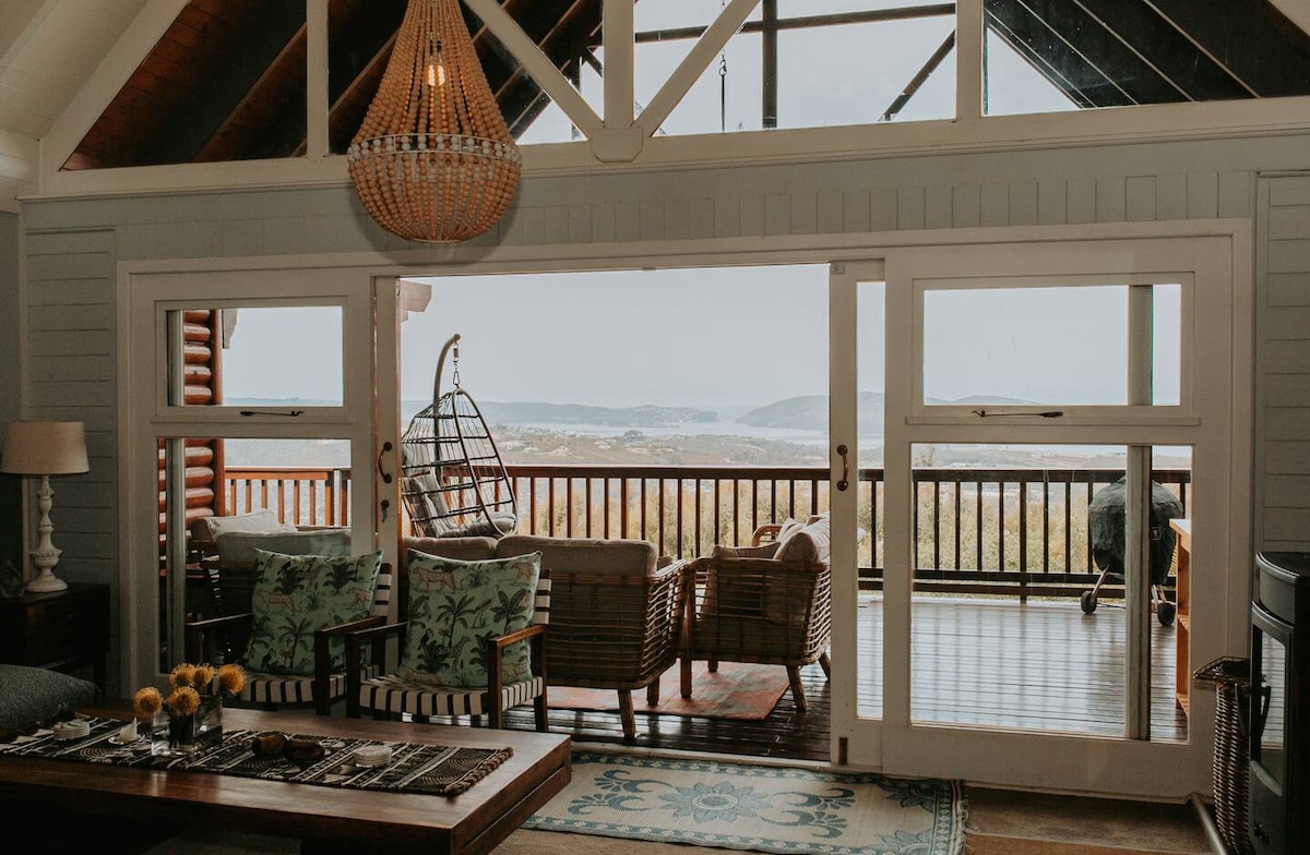 Vistas de 180 grados (solar para la seguridad energética) de la impresionante laguna de Knysna en un barrio tranquilo. ¡Acabados de primera en una casa nueva! Precioso jardín y piscina. Terraza soleada para disfrutar de las vistas y una chimenea para añadir ambiente y calidez en las noches más frías. Muy cerca de la ciudad, pero tranquilo y privado. Braai/barbacoa para cocinar y cenar al aire libre en las muchas noches hermosas. Las reseñas de todos nuestros huéspedes lo dicen todo y el 75 % de nuestros huéspedes son viajeros internacionales exigentes.