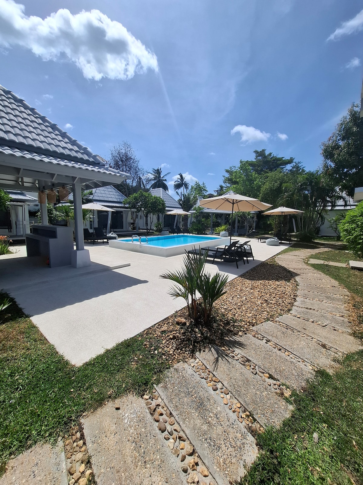 Potential for noise starting from April ‘26 as the villa next door will start renovations. By booking, guests accept construction noise between 8:00 AM – 6:00 PM daily. Pricing has been reduced to reflect this. A rare opportunity to rent this beach villa monthly, typically a short stay rental. Bang Por Beach views from your porch and pool. Walking to local & international restaurants. Ideal for remote work, with flexible or off-hour schedules. Free cleaning, WiFi, Netflix, SUP, kayak & pool.