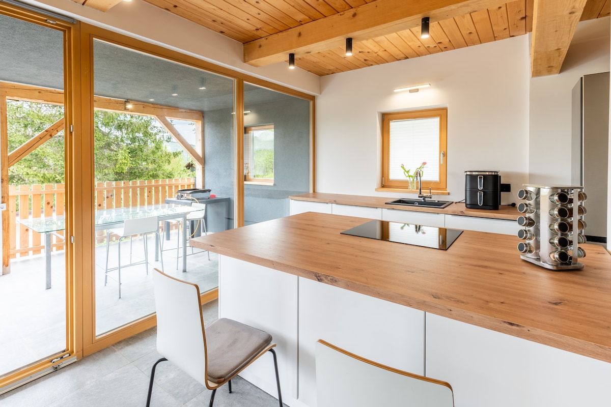Villa Nadica es un refinado refugio en el bosque de Kostel, ideal para los huéspedes que buscan comodidad y paz. Este elegante refugio cuenta con una acogedora cama doble y un sofá cama. La villa incluye un escritorio, una cocina totalmente equipada y un baño moderno. En el exterior, el hermoso jardín ofrece una bañera de hidromasaje de leña y un jardín orgánico con hierbas y verduras, perfecto para relajarse y disfrutar del entorno natural. Experimenta la mezcla de lujo y naturaleza en esta escapada serena.