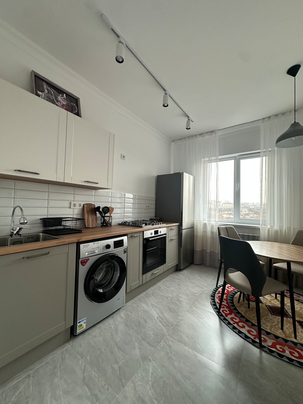 Este apartamento estudio de 50 metros cuadrados está situado en el corazón de la ciudad. Situado en un edificio clásico de la era soviética de 1971, ofrece unas vistas impresionantes del perfil urbano, las montañas, la torre de televisión, Kok Tobe y el emblemático Hotel Kazakhstan. El barrio es seguro y vibrante, por lo que es ideal para escapadas cortas o estancias prolongadas. El apartamento está totalmente equipado con todos los elementos esenciales para garantizar una experiencia cómoda y práctica.