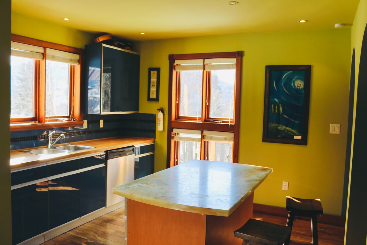 Tan pronto como eches un vistazo por la puerta de nuestra casa de 4 dormitorios y 3 baños para ver las barandillas de metal forjado, sabrás que tus vacaciones serán una obra de arte. Pero este alquiler vacacional único no solo es divertido a la vista. Encuentra ventajas como una sala de yoga y almohadas, una mesa de billar, dos suites principales y mucho más. Ven a nuestra zona de Columbia Británica para disfrutar del campo de golf Redstone y el sendero Upper Louie Joe (ambos cercanos); alójate en esta casa única a pocos pasos del centro de Rossland. ¡Se admiten mascotas!