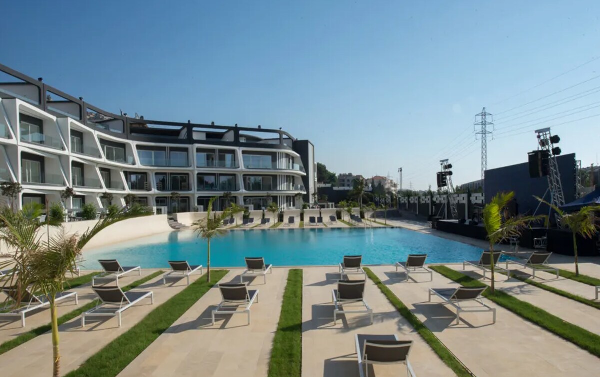 Chalet se encuentra en Las Salinas 1, el complejo más hermoso del norte del Líbano. El centro vacacional cuenta con 5 piscinas al aire libre y 1 cubierta, canchas de tenis y baloncesto, canchas de squash, salas de juegos para niños, gimnasio, sauna, vapor, jacuzzi, centro de bolos, cines, centro de diversiones y más. Mi chalet es un dormitorio, un baño, sala de estar abierta a una cocina, con un balcón que supervisa el mar y la piscina. Después de nadar en la playa privada, bebe una copa o come en los encantadores restaurantes de la playa.