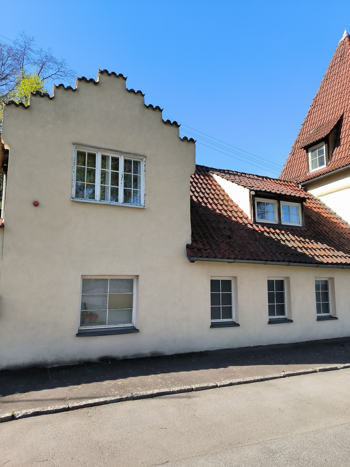 Disfruta de la vida sencilla en este alojamiento tranquilo y céntrico, a 10 minutos a pie de la estación de tren y a 20 minutos del centro de la ciudad, a 3 minutos del S-Bahn. El apartamento es un cobertizo reformado, al que se accede por una escalera empinada. Hay una pequeña zona de entrada en la planta baja con armario y asientos. El piso superior tiene una pequeña sala de estar/dormitorio con una pequeña cocina, asientos y un pequeño baño con ducha.
