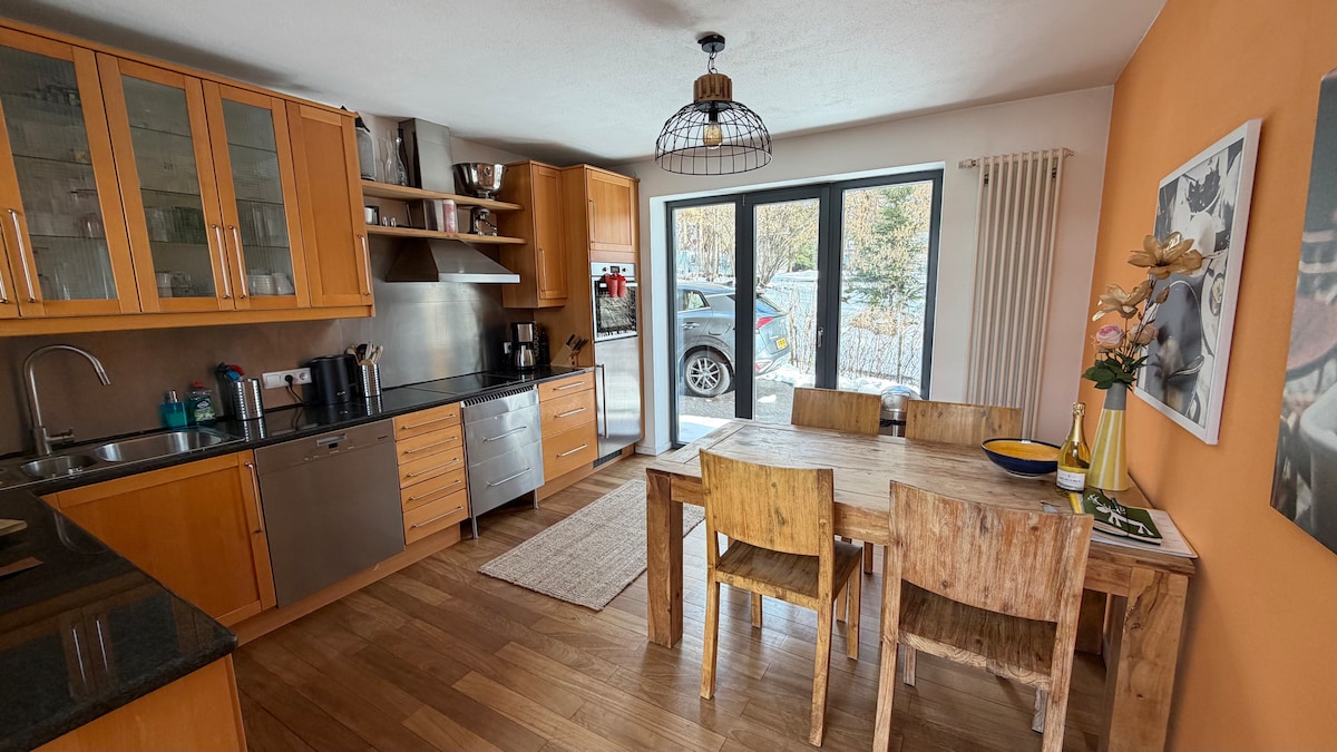 Spacious apartment in a stylish villa with a large sun terrace in Innsbruck's nature and recreation area above the city, offering hiking and biking opportunities directly from the house. Just a 3-minute walk from the bus and the Nordkette cable car, which takes you to the city center or the Nordkette mountain range (snow park and single trail) in just a few minutes, or there's a direct bus connection to the Patscherkofel ski and hiking area. Perfectly for nature and city life in summer&winter.
