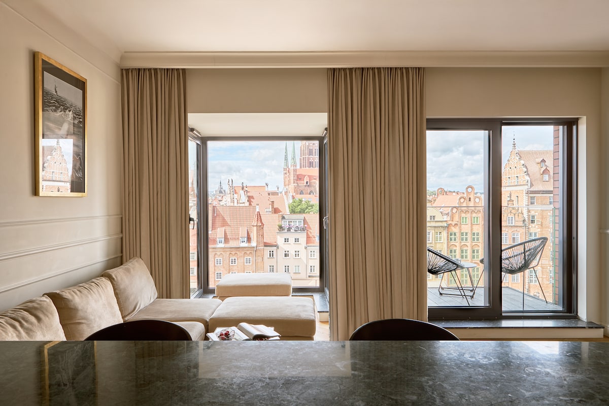 Niepowtarzalny apartament z najlepszym widokiem na Starym Mieście w Gdańsku. Apartament posiada przestronny, umeblowany taras z widokiem na zabytkowe kamienice, wizytówkę Gdańska - Żuraw, rzekę Motławę oraz Bramę Zieloną. Apartament mieści się w inwestycji Deo Plaza, która umożliwia gościom dostęp do strefy SPA, basenu, (płatne dodatkowo na miejscu). Apartament idealny dla gości ceniących sobie luksus, wygodę i wypoczynek na najwyższym poziomie.