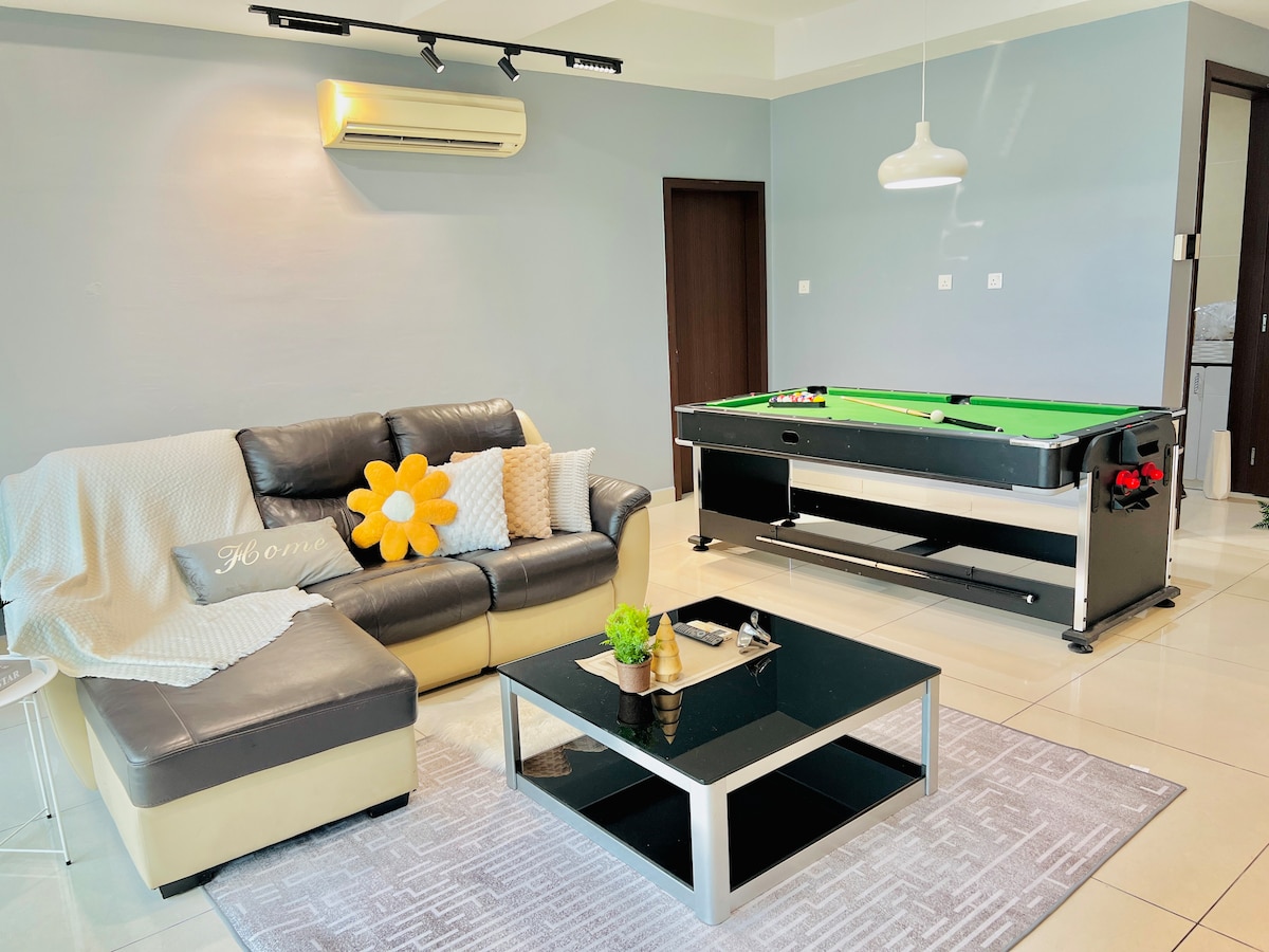 Cozy and Beautiful, Mini Pool Table in House, WIFI-enabled condominium with Gym and Infinity Pool in Johor Bahru. The Mall, Southkey Midvalley Mall - 5 Mins WALKING DISTANCE. 65” Smart TV 4K With NETFLIX/ YOUTUBE WIFI 500 Mbs.✅ KSL -10 Min CIQ-10 Min Larkin-20mins Danga bay -18mins Paradigm Mall-20 to 25mins -Light cooking allowed( Salt and oil provided) -Washing Machine -Extra Mattress Queen size available with Pillows and Blankets- Total Rm 50(👈🏼 Just for Laundry cost😊