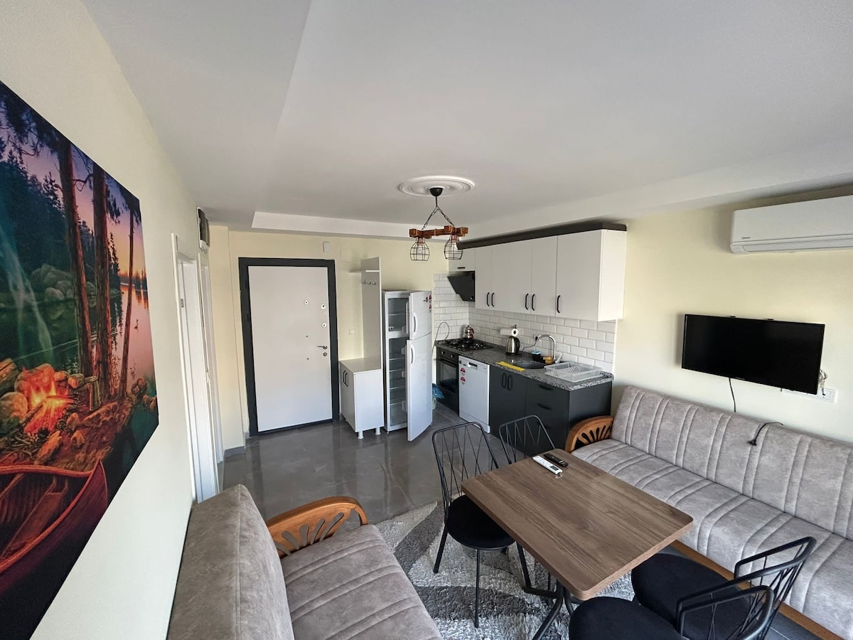 APARTAMENTO; SE ENCUENTRA EN EL BARRIO DE TAŞUCU-KUM. ESTÁ A UNOS 700 M DEL MAR. 1 HABITACIÓN, 1 SALA DE ESTAR + COCINA, WC, BALCÓN. DISPONEMOS DE AIRE ACONDICIONADO Y MOSQUITERAS. TODOS LOS ELECTRODOMÉSTICOS Y UTENSILIOS DE COCINA ESTÁN DISPONIBLES. WI-FI GRATIS DISPONIBLE. LA INSTALACIÓN DE BARBACOA ESTÁ DISPONIBLE EN EL JARDÍN. AGUA CALIENTE LAS 24 HORAS. El apartamento es para 4 personas. HAY 2 SOFÁS CAMA EN EL SALÓN Y UNA CAMA DOBLE EN EL DORMITORIO. HORA DE LLEGADA 12:00 HORA DEL CHECK-OUT: 10:00 EL USO, EL AGUA, EL USO DEL CILINDRO DE GAS ESTÁN INCLUIDOS EN EL PRECIO. CERCA DE LA CARRETERA PRINCIPAL A LOS MERCADOS. el lugar para alojarse es perfecto para viajes en grupo.