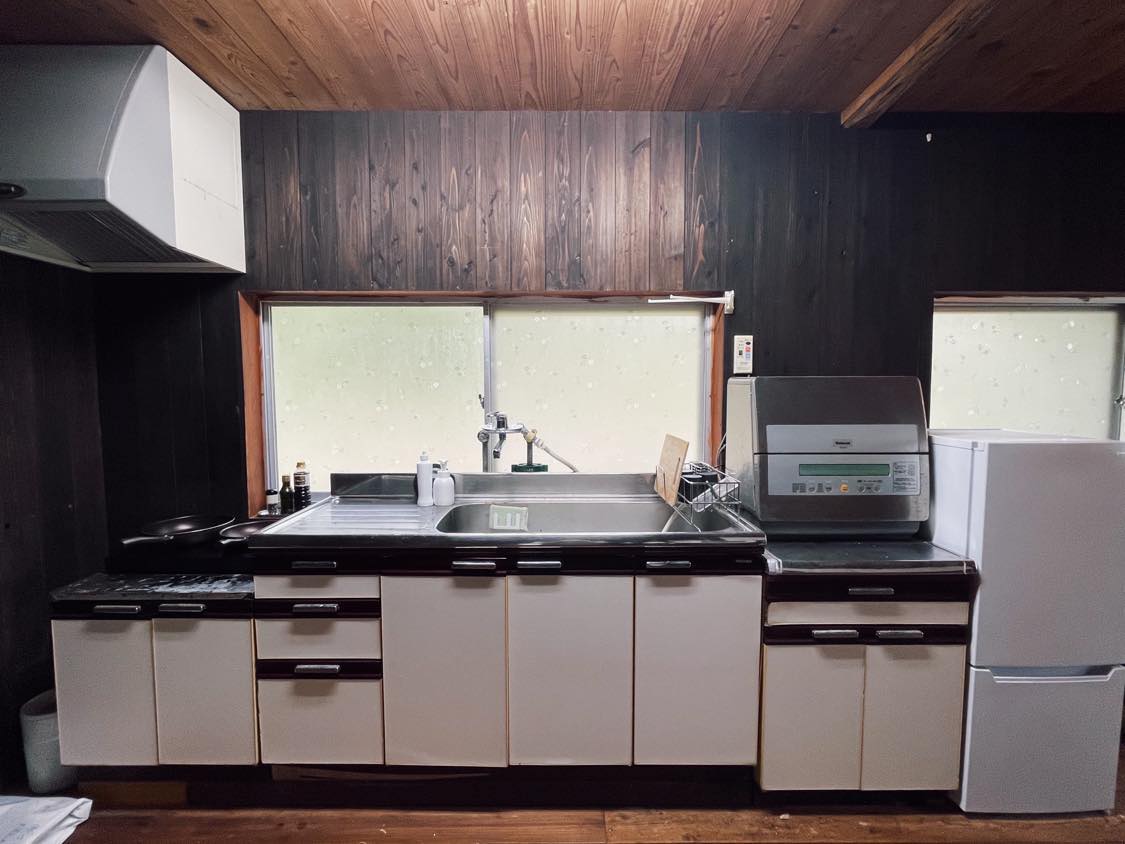 Esta ubicación es un lugar muy tranquilo y secreto para una casa de vacaciones. Hay una pequeña sala de tatami como una sala de té que puedes usar como yoga, meditación, etc. para tu tiempo privado. Sin embargo, no hay instalaciones de cocina. Ofrecemos una olla eléctrica, tazas, platos pequeños, nevera, microondas y horno, parrillas, tostadora, para que puedas traer algo de comida, etc. Hay vistas al mar y al bosque desde la casa de invitados. La casa de campo está hecha en estilo japonés con madera de cedro local aromática, vigas abiertas y pantallas Shoji.