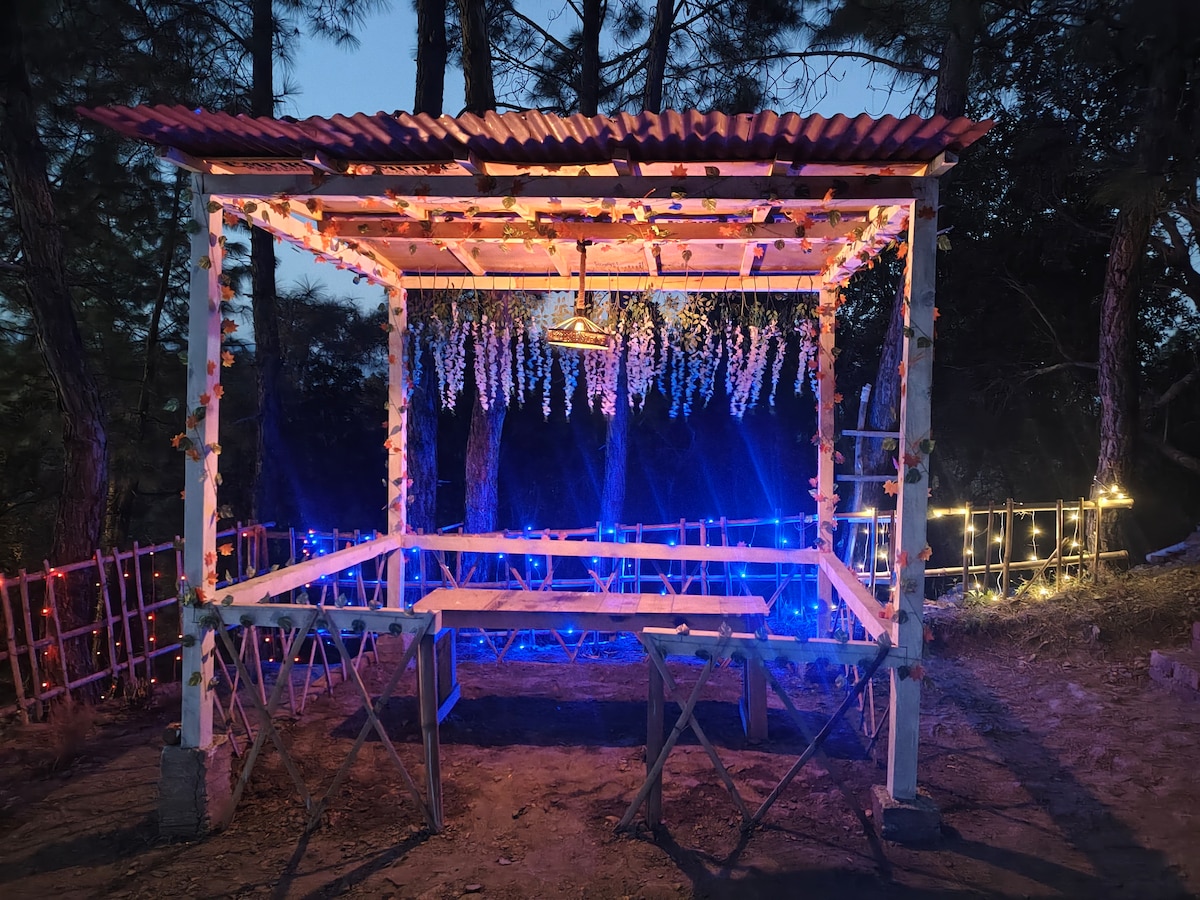 Ramia Kafal – Where Silence Becomes a Sound Welcome to Ramia Kafal — a wooden lodge tucked deep in the peaceful folds of Uttarakhand. With 4 beds, 2 bathrooms, and warm pine interiors, it feels like a cabin straight out of a mountain dream. Wake up to sunlight filtering through cedar trees. Sip chai with clouds floating right beside you. Walk barefoot on the grass and feel life slow down again. Here, silence isn’t empty — it’s full. Full of fresh air, birds, mountains… and you.