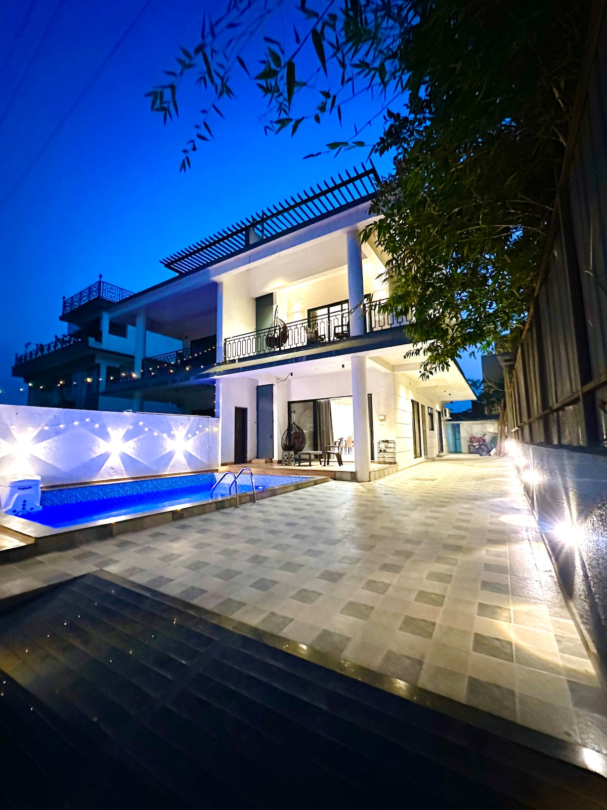 Escape to serenity in this stunning 2BHK villa with largest private pool with jacuzzi, surrounded by lush greenery and a tranquil atmosphere. This villa is more than just a house; it's a dream realized. We've poured our hearts into creating a space that balances elegance with functionality, offering a haven for relaxation rejuvenation. Our villa offers a blend of modern luxury and comfortable living, designed to create lasting memories.