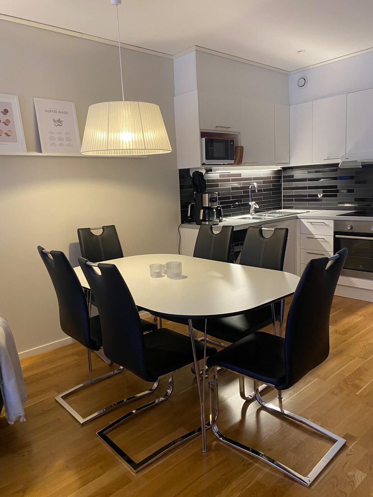 Bienvenido a Backgläntan 8, un apartamento moderno en Kungsberget con todo lo que necesitas. Disfruta de una sauna, estufa de etanol, cocina completa y terraza amueblada en la azotea con barbacoa y fantásticas vistas durante todo el año. Dos dormitorios con un total de 6 camas: uno con una cama doble, otro con una litera y un sofá cama para dos en el salón. El apartamento tiene internet de fibra y muchos juegos para toda la familia. Servicios como SodaStream, cafetera, Airfryer y gofrera. Cargador de coches eléctricos en la zona. Alojamiento libre de mascotas y libre de humo.