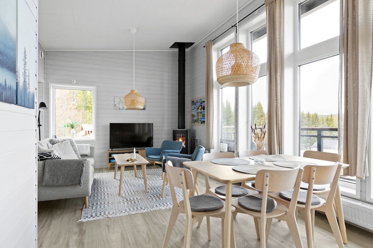 Departamento cómodo y bien equipado a partir de 2016. El apartamento tiene 6 camas normales divididas en dos dormitorios y un sofá cama en la sala de estar. La cocina y la sala de estar tienen una planta abierta que forma un buen lugar de reunión entre esquí, excursiones en bicicleta, excursiones de un día, pesca, etc. Hay un balcón con vistas a la montaña y una bonita sauna, así como una lavadora. Además, hay servicios para bebés/niños, juguetes, juegos de mesa, altavoces BT, TV con servicios de streaming y libros para leer.