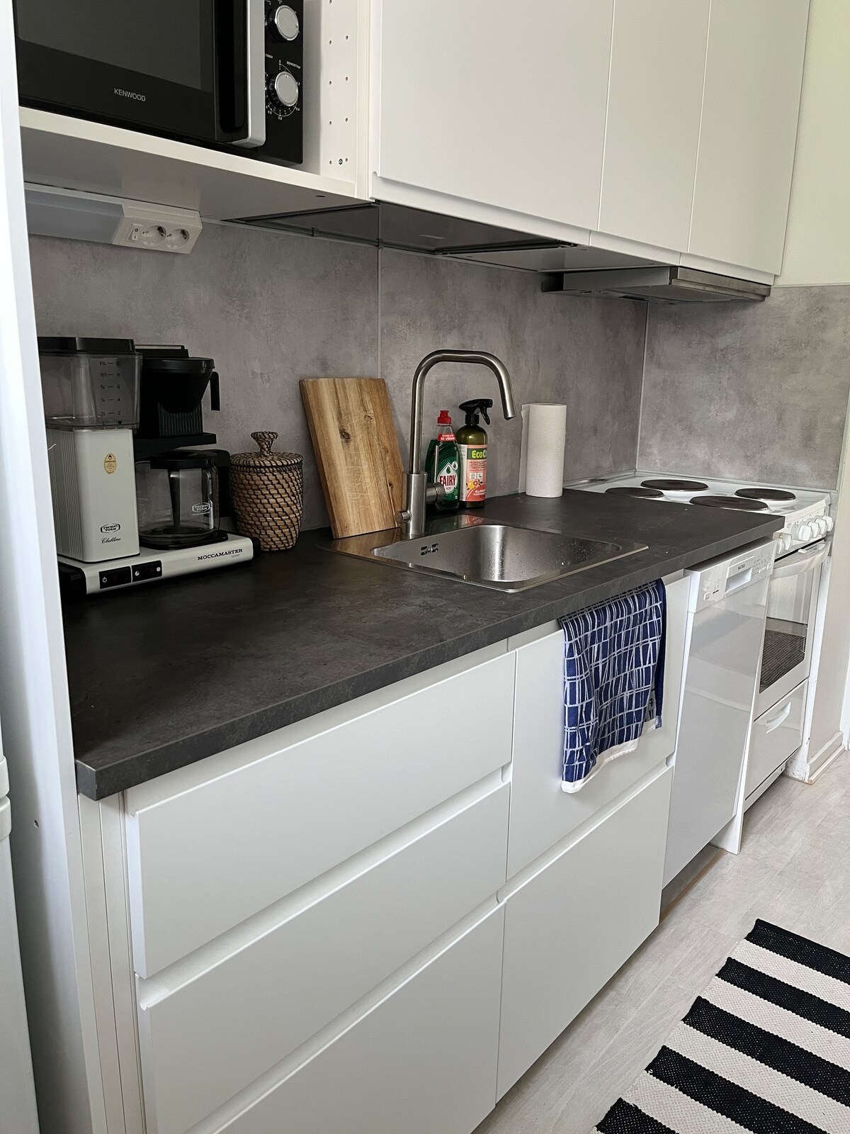 Sencillo en este lugar céntrico. El apartamento tiene una plaza de aparcamiento gratuita y aire acondicionado en verano. El apartamento renovado se encuentra a una manzana de la plaza, a solo 350 metros a pie de la estación de tren. Desde la ventana se puede ver la torre de la catedral, ¡y la vida de restaurantes de Kuopio le espera a solo dos manzanas de distancia! El apartamento tiene una cama doble de 160 cm de ancho y, si es necesario, el sofá también puede alojar a una persona adicional (NOTA: área para dormir limitada; 180 cm×85 cm).