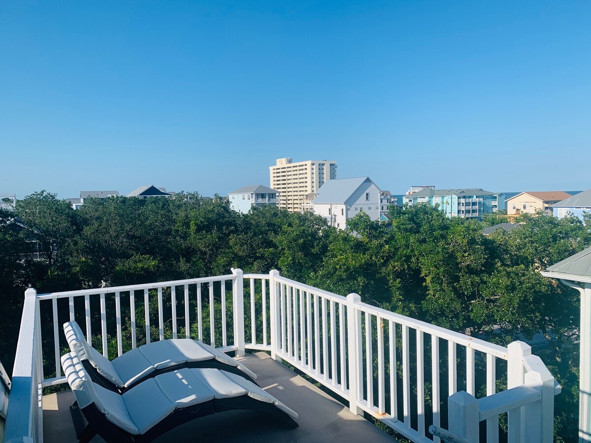 Welcome to Captain & Ginger! This spacious house is just a 3 minute walk from the beach access! Only two roads separate you from the sandy beach! Each bedroom is accompanied with a full private bathroom. Three stories of beach fun with; large common area on the entire second floor, and two quiet bed rooms on the third floor.