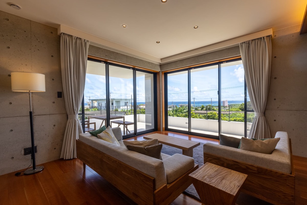 El mar que se extiende ante nuestros ojos es de un azul degradado, típico de Okinawa. Este hermoso mar es visible desde cualquier lugar de la habitación. Es una villa de lujo con piscina de agua caliente y jacuzzi en la azotea que ofrece un espacio completamente privado para un solo grupo. A pesar de estar justo enfrente del mar, está muy bien ubicado, a 5-10 minutos en coche del principal distrito comercial de Miyakojima, restaurantes y un supermercado abierto las 24 horas. Ya sea para parejas, familias o amigos, podemos satisfacer todas las necesidades. Disfrute de una estancia de lujo, perfecta para una luna de miel. *Si se alojan dos personas, se proporcionará una cama king size. Si se alojan tres personas, se proporcionará una cama king size y un futón individual. Si se alojan cuatro personas, se proporcionará una cama king size y dos futones individuales. * La piscina de agua caliente puede ser difícil de entrar dependiendo del clima y la temperatura, especialmente en invierno. Gracias por su comprensión.