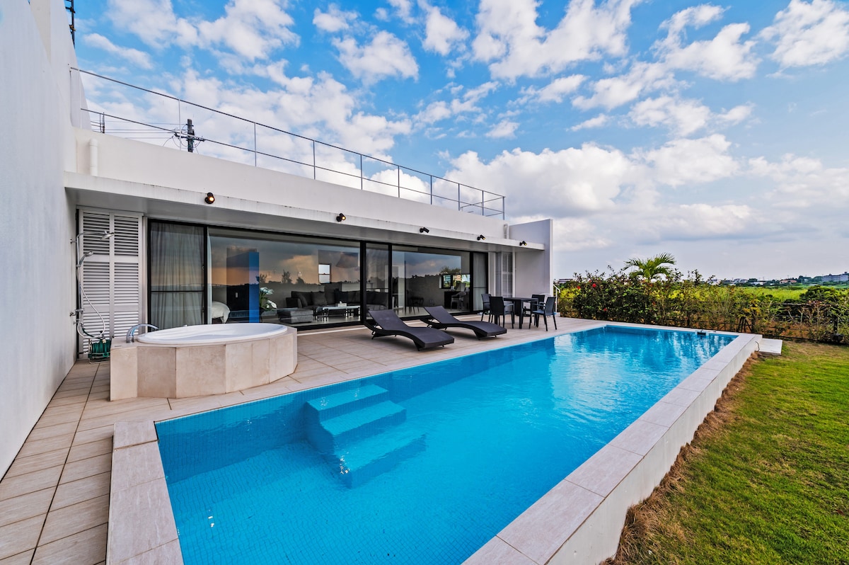 Es una villa completamente independiente rodeada de una gran terraza, piscina privada y naturaleza. Tan pronto como pases desde la playa de Yonaha Maehama, que se llama Oriental, el edificio blanco más prominente es Villa Conte. La gran terraza donde puedes disfrutar de barbacoas (se requiere reservación anticipada) y toda la longitud de la piscina privada climatizada es un espacio privado rodeado de paredes blancas. Tendrás una estancia relajante en una villa de la que no tendrás que preocuparte. Tiene una moderna sala de estar interior y comedor, una cocina completa y los últimos electrodomésticos y muebles, para que puedas vivir como un habitante más en la isla de Miyako. Con 2 dormitorios y 2 baños, incluso dos parejas pueden alojarse con tranquilidad. Disfruta de alojamientos ininterrumpidos y maravillosos en un centro vacacional bajo cielos estrellados sin obstáculos.