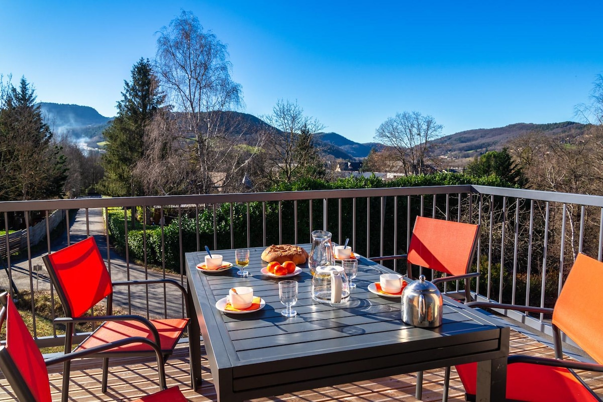 Ideal para relajarse, hacer senderismo y ciclismo, esquí de fondo en la meseta de Aubrac, disfrutarás de la casa por la gran terraza de madera, la vista del pueblo, orientada al sur. Te encantará el ambiente cálido del gran salón, la gran cama acogedora y la tranquilidad. Para el invierno, la casa está aislada y climatizada. Toma de carga de coche privado y espacio de trabajo remoto, wifi. Supermercado, panadería, farmacia, médico y enfermeras en el pueblo a 1 km.