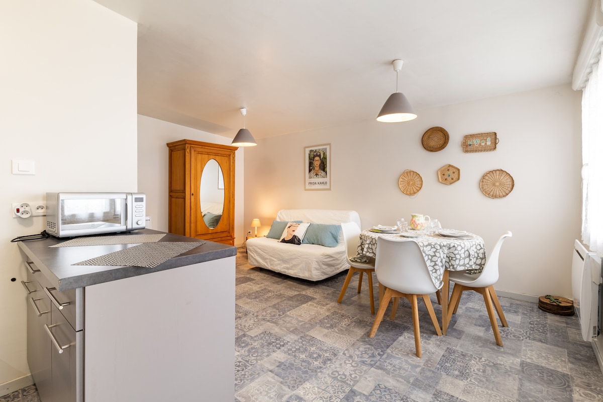 Grand T1 cosy, rez de jardin, mitoyen parc Thermes