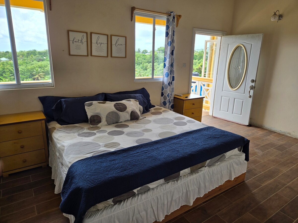 Emerald Vista’s model home is thoughtfully planned and tailored to cater for you, the discerning individual. It is situated on a breezy hillside facing exhilarating views of the Atlantic Ocean on the southeastern side of the island. It is a spacious four bedroom, freehold property tastefully decorated to add to the ambiance of living in paradise. The owners of this villa also own and operate True Value hardware located in Vfort town!