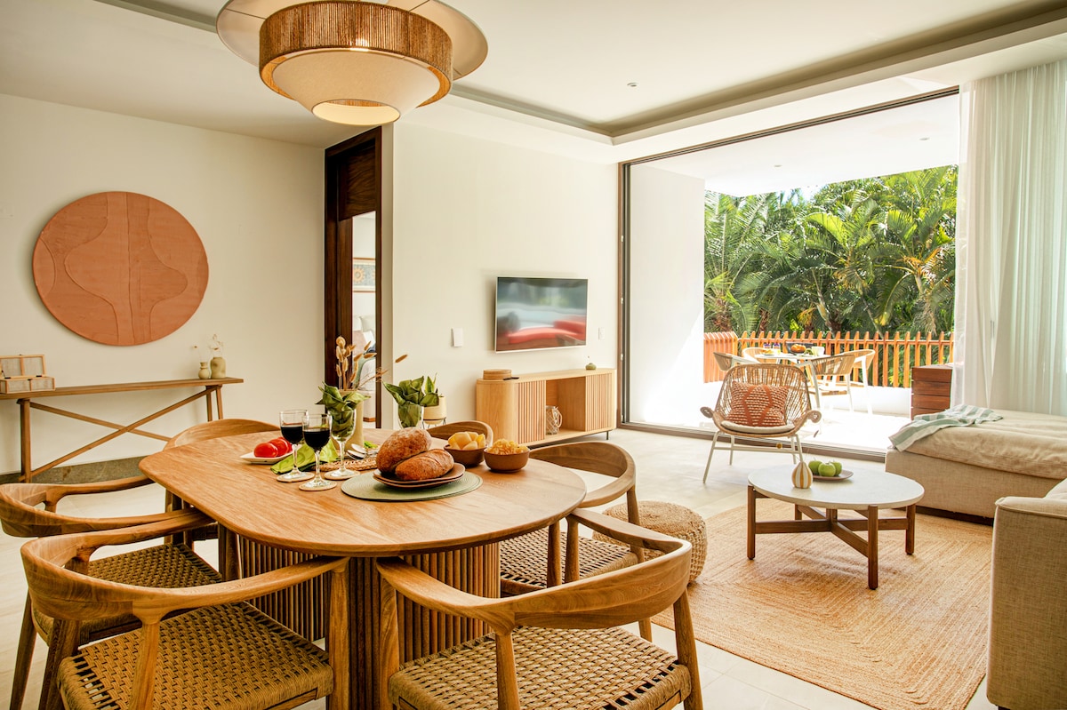 Hermoso apartamento con piscina privada en el exclusivo Arena Blanca, un condominio de lujo frente a la playa en Riviera Nayarit. Disfruta de los mejores servicios: seguridad las 24 horas, los 7 días de la semana, estacionamiento en el lugar, gimnasio, club infantil, piscina compartida, restaurante (9-18 horas) y acceso a la playa privada más exclusiva de Riviera Nayarit. Cuenta con una amplia sala de estar con cocina, perfecta para relajarse o pasar tiempo con familiares y amigos.
