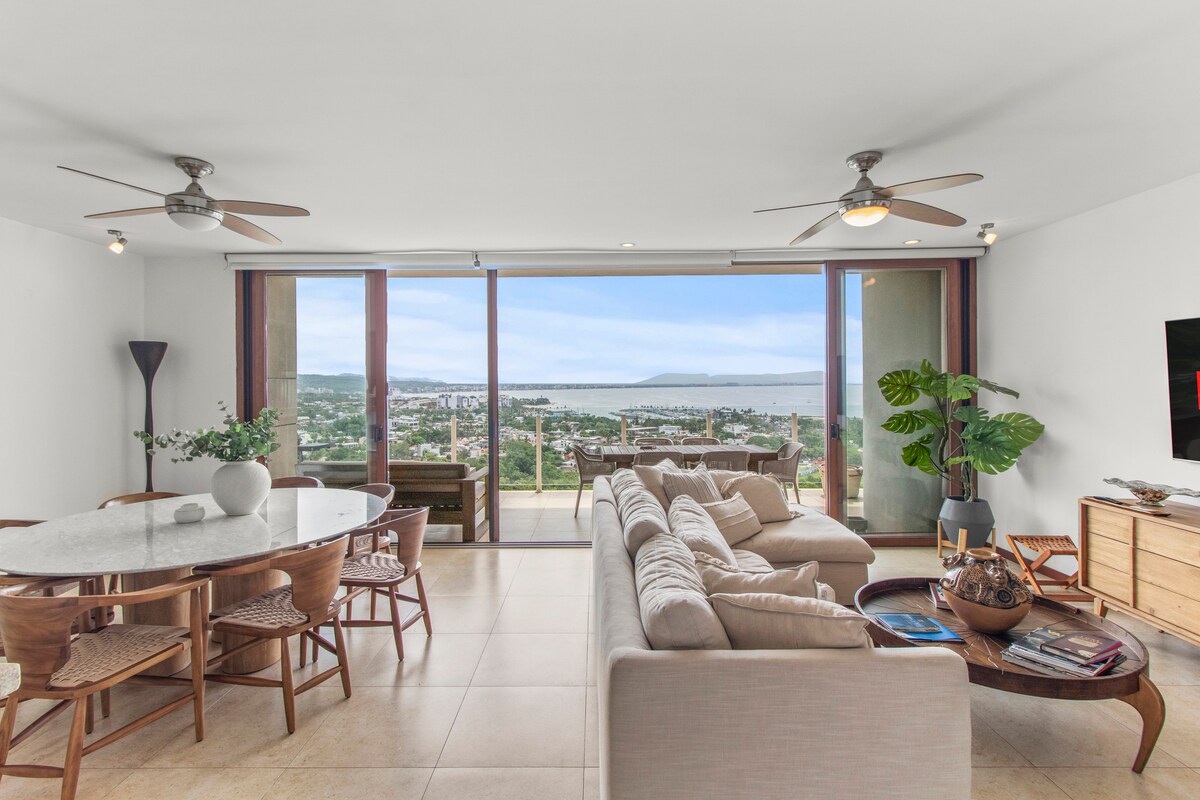 Vistas al mar a un lado y vistas a la montaña al otro. Planta abierta con 2 baños, lavandería y el piso superior es un patio con techo de palapa con impresionantes vistas a la bahía. Mármol y granito en todas partes, mucho aparcamiento en el interior, así como aparcamiento en la calle. Tiene una vista del puerto deportivo de primera categoría. Ven a disfrutar del paraíso mexicano mientras bebes tu café y observas ballenas desde la comodidad de tu hogar.