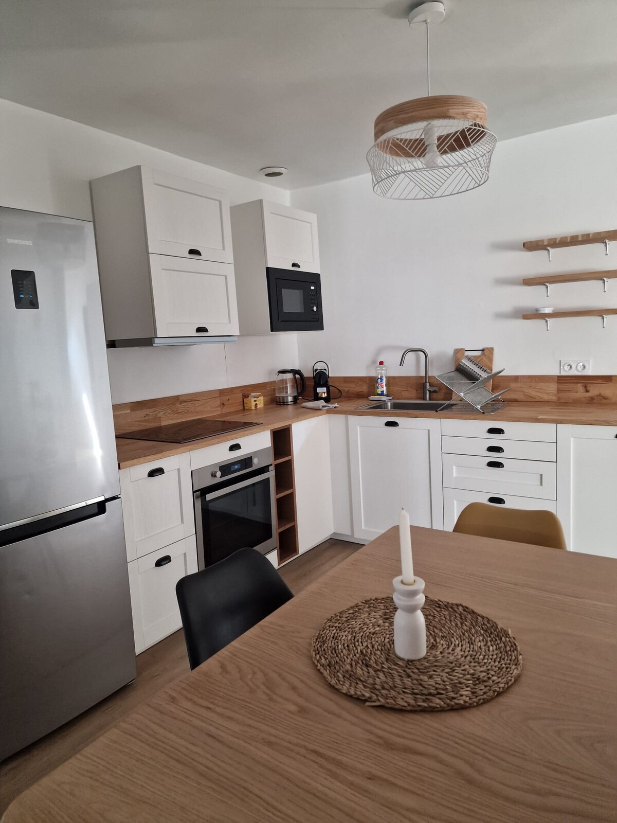 Encantador apartamento independiente Bienvenido a nuestro acogedor apartamento totalmente equipado, situado al final de nuestra gran casa. Disfrutará de una sala de estar con sofá cama, un amplio dormitorio, una cocina funcional y un baño con ducha. Ideal para una estancia tranquila, en plena naturaleza y a 10 minutos de los servicios y autopistas Si lo desea, puede disfrutar de los muebles de jardín y una mesa y sillas .