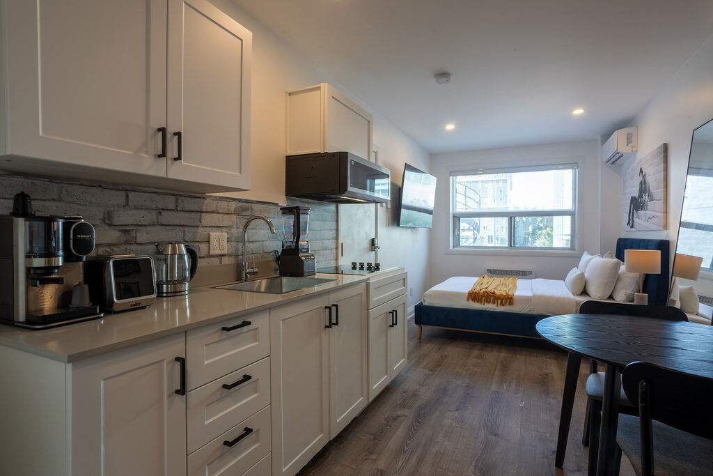 Bienvenido a tu elegante estudio en el corazón de Montreal. Perfecto para el trabajo, el estudio o el ocio, este espacio cuidadosamente diseñado combina comodidad, carácter y conveniencia. Ubicado a pocos pasos de la UQAM y cerca de McGill, en el vibrante Barrio Latino, estarás cerca de los mejores cafés, restaurantes y fácil acceso al metro. Cada detalle está cuidado al máximo, desde el mobiliario de buen gusto hasta los servicios de calidad hotelera, para garantizar una estancia cálida y refinada.