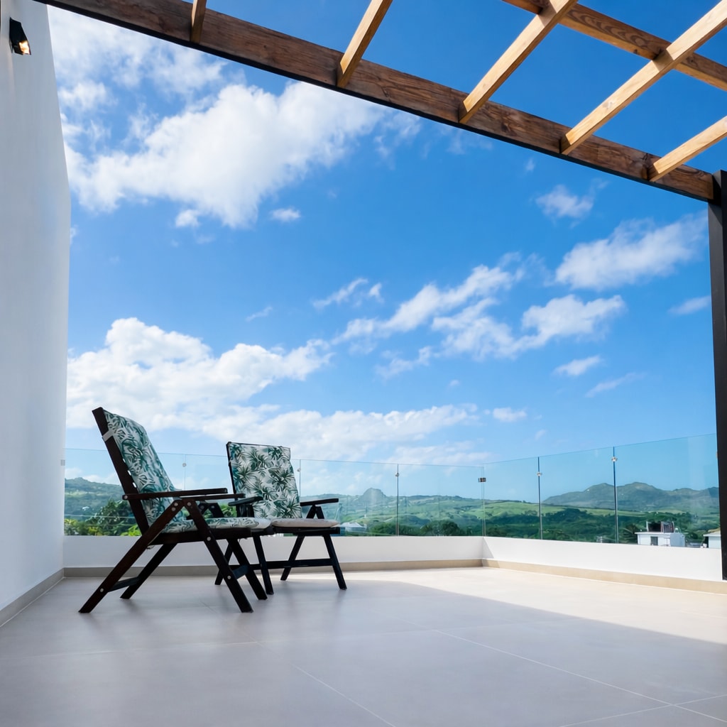 Paradise up on the hill overlooking the valley where cows graze, where music floats up the hill from the village of Luperon. Majestic mountains where afternoon thunderclouds develop. Pool a few yards away and a beach 12 min. walk from your door. We have also added a BBQ for balmy night outdoor meals. We have had writers and artists move in and never want to leave! Fiber optic Wi-Fi. Our other apartment The Rest, is larger and just as stunning. Check it out!