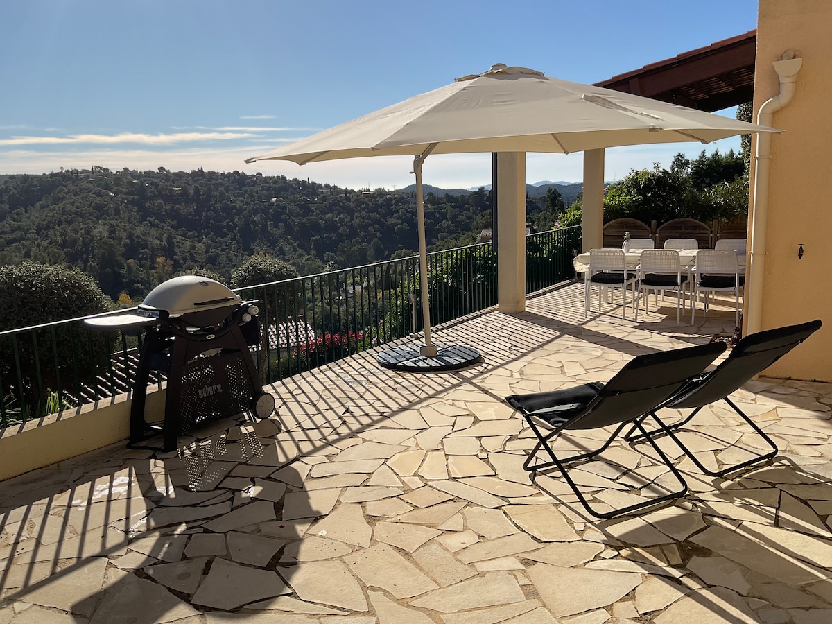 Relájate en este lugar pacífico, rodeado de naturaleza. Impresionante vista de las montañas (Les Maures) y el mar. A 5 minutos a pie de la reserva natural o piscina comunitaria/canchas de tenis/ping-pong/columpios (acceso gratuito). Recientemente renovado y totalmente climatizado/climatizado. Cuna vallada. Nueva cuna para bebés, cambiador y silla alta disponibles bajo petición. Playa cercana: 15 minutos en auto o 30 minutos en bicicleta. Espacio de oficina tranquilo con wifi. Ropa de cama y ropa de cama proporcionada. 7 en camas/dormitorios, 2 en sofá cama/sala de estar.